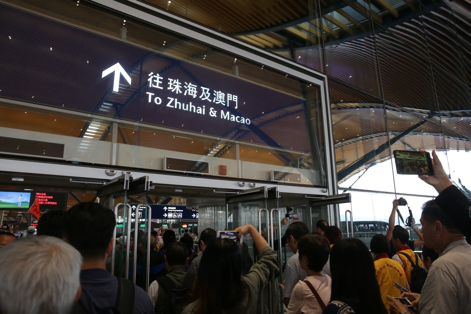 《香港01》記者今(24日)日乘坐首班跨境直通巴,以前往珠海口岸。在早上九時,有不少市民及旅行團已到達,大橋香港口岸亦正式投入服務。1 [; o" l9 F, a8 [; K