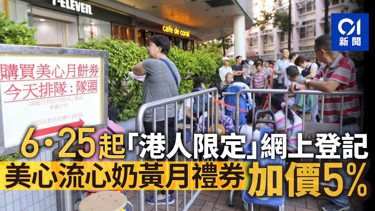 近年深受食客追捧的美心流心奶黃月餅,每逢開售均出現人龍搶購,並在網上平台高價放售。近日有市民取得美心食品派發的網上登記其流心奶黃月餅禮券抽籤預購單張,顯示登記時段由本月25日至30日晚上11時59分截止,標明「機會均等,無需搶先登記」。中籤名單則於7月9日至10日公布。