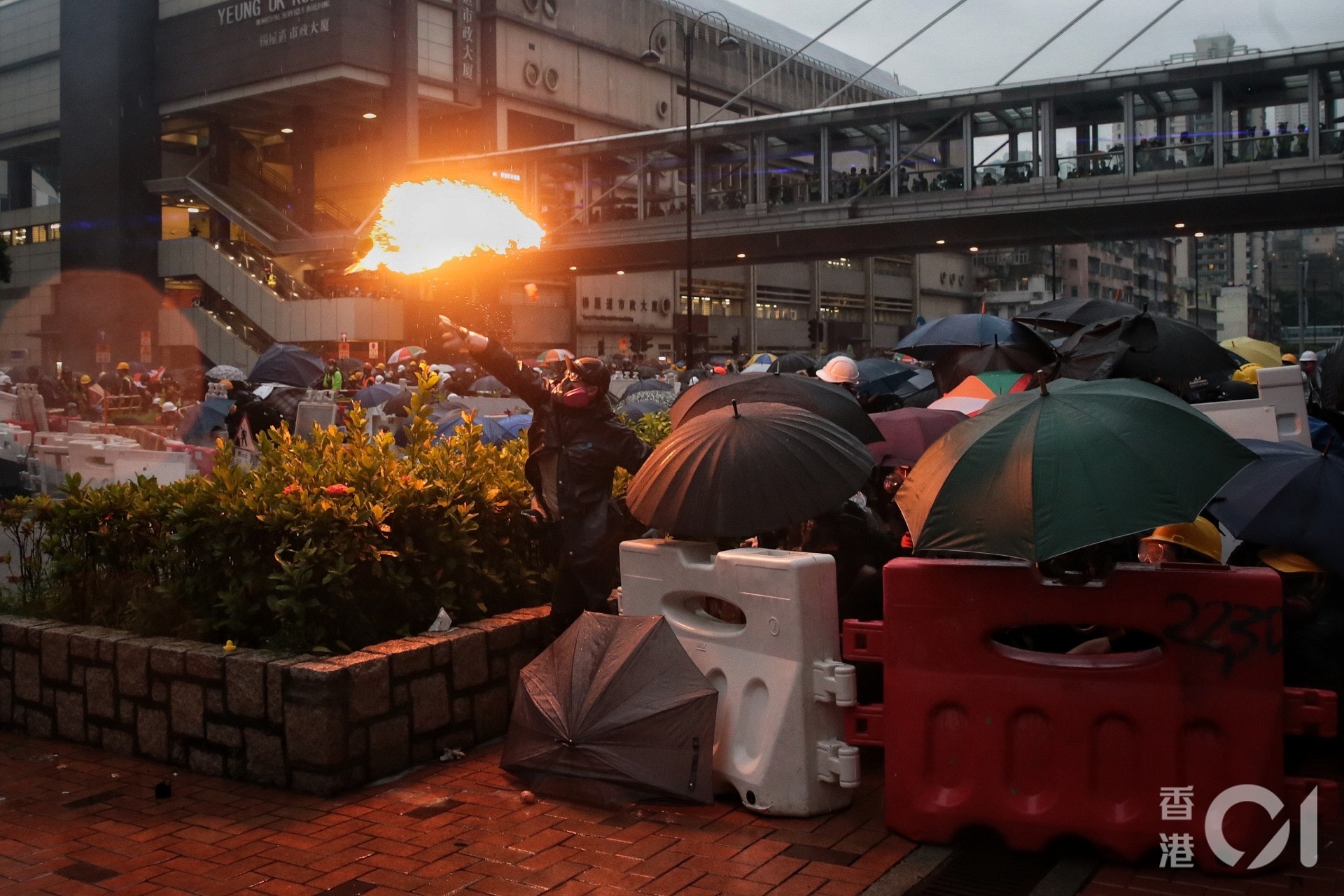 有激進示威者向警方掟汽油彈。(李澤彤攝) 0 l' C' F' _7 @3 _- X. c. P2 J3 v& n, Ltvb now,tvbnow,bttvb$ o A6 i( I; b: j. q3 s8 ~' L
