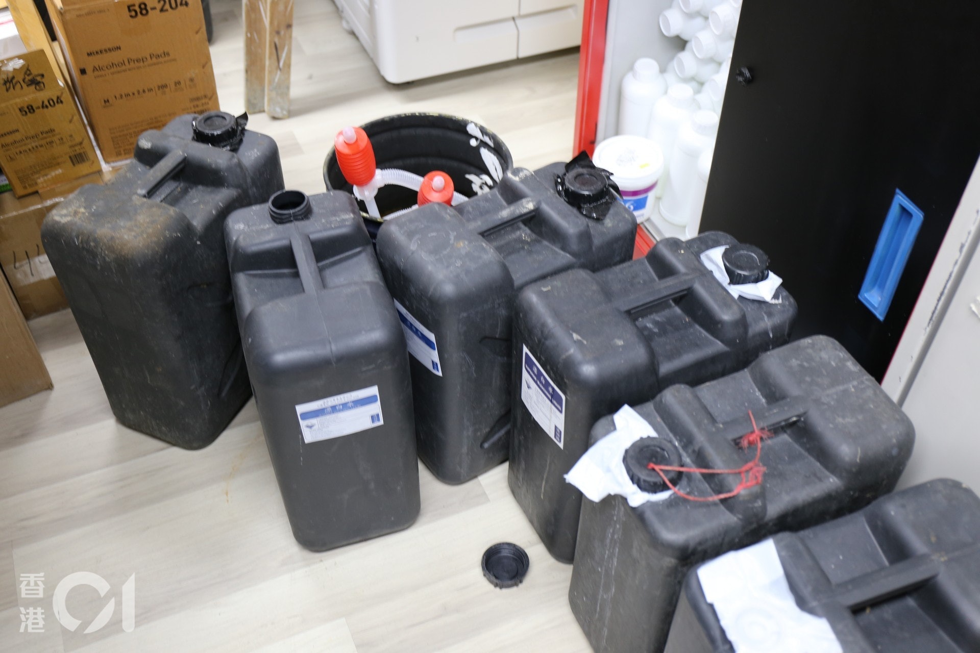 7 U$ M+ N X1 [( mtvb now,tvbnow,bttvb去年「搣時潘」被捕及被押返長沙灣議辦調查,警員在辦事處撿走一桶漂白水。(資料圖片) |