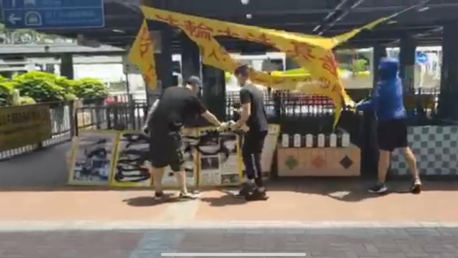 法輪功多個街站4月被人破壞橫額及宣傳品,警方調查後拘捕8名男子。