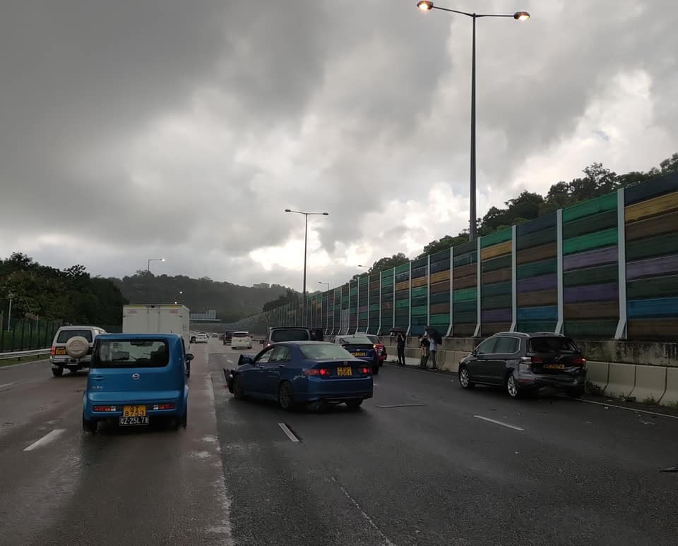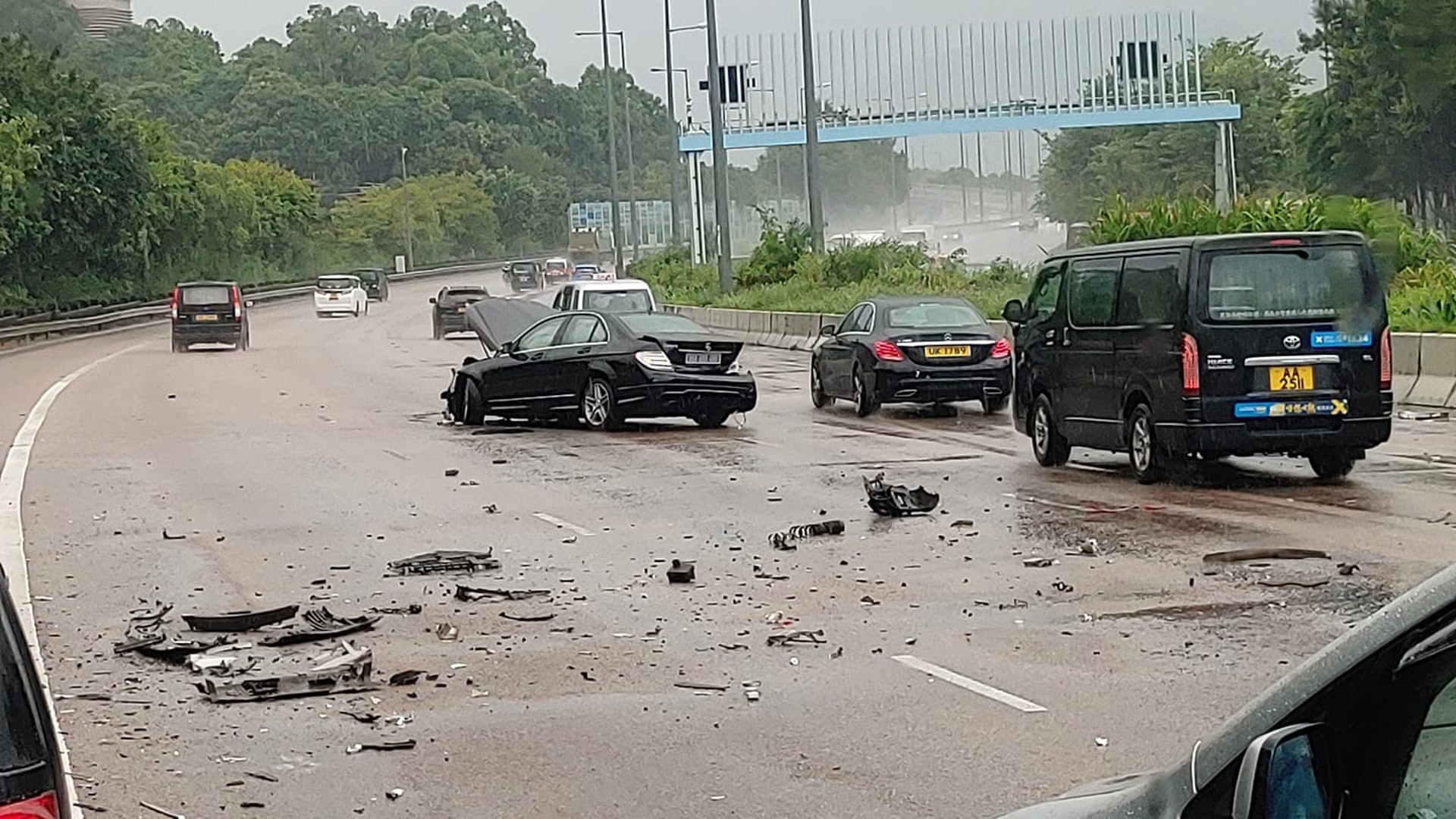該宗意外發生於昨晨近7時,警方表示牽涉三輛私家車、一輛輕型貨車及一輛的士,五車在往沙田方向近廣福邨對開吐露港公路相撞,意外中的士司機受輕傷送院。