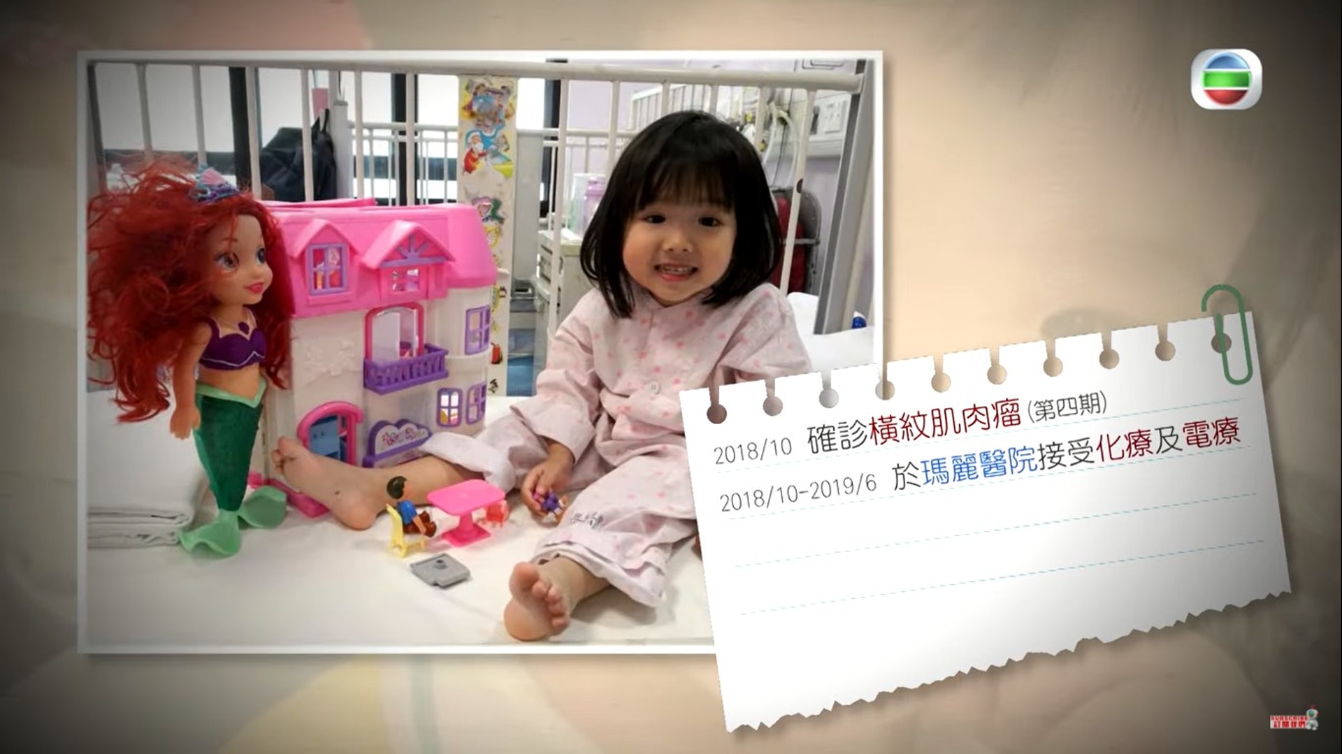 ; \' D D9 G! `tvb now,tvbnow,bttvb可惜她3歲時確診了癌症。(節目截圖)