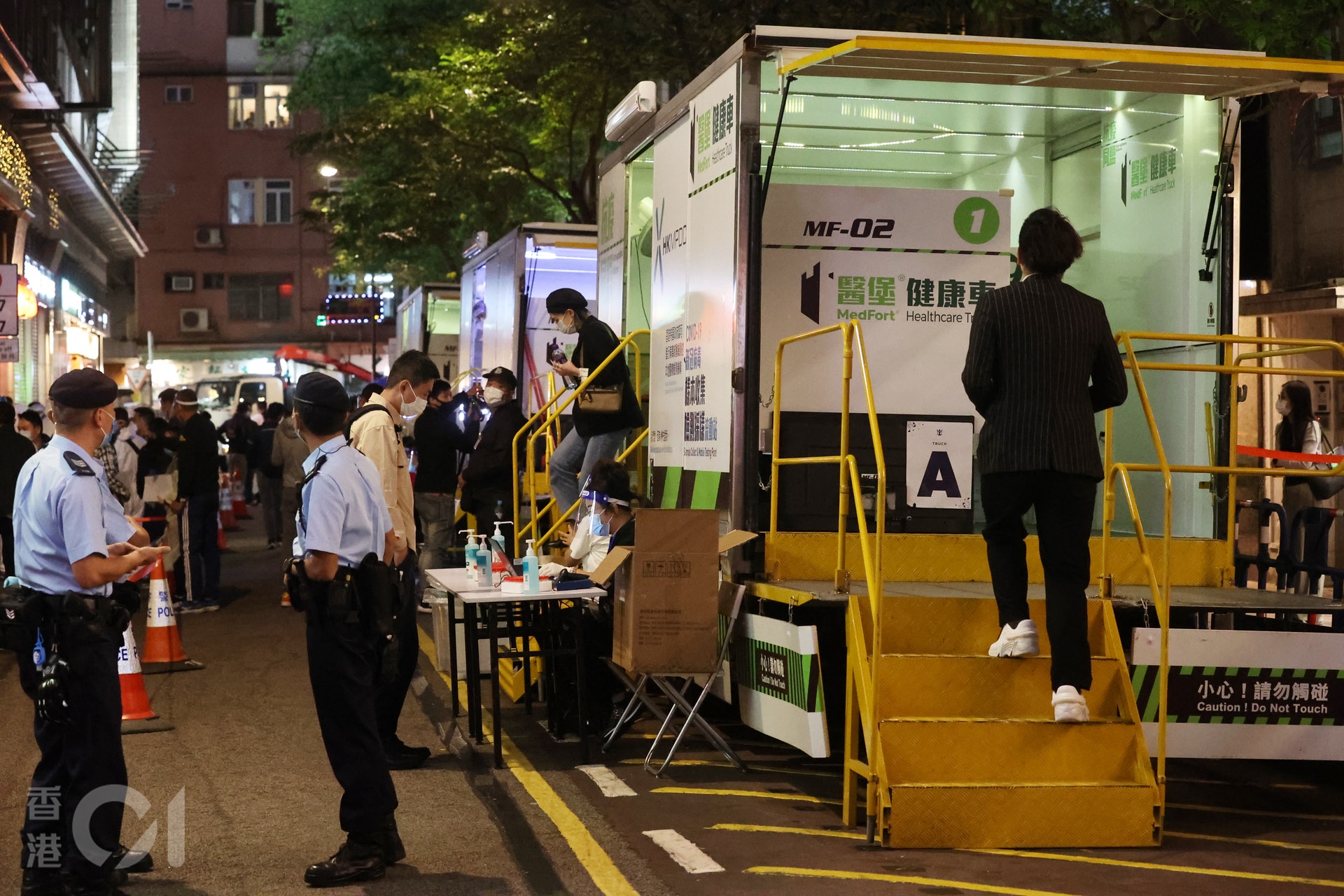 2 @2 j* N3 t8 A3 m尖沙咀凱譽封區檢測。(梁煥敏攝)