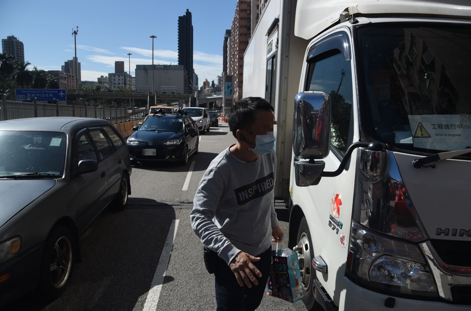 貨車駛至康莊道、右轉入紅磡漆咸道北對開,其中一名女乘客突然從左邊車門跌出車外。(蔡正邦攝)tvb now,tvbnow,bttvb1 W& r# a G8 O% T6 a% O( O3 N. L
