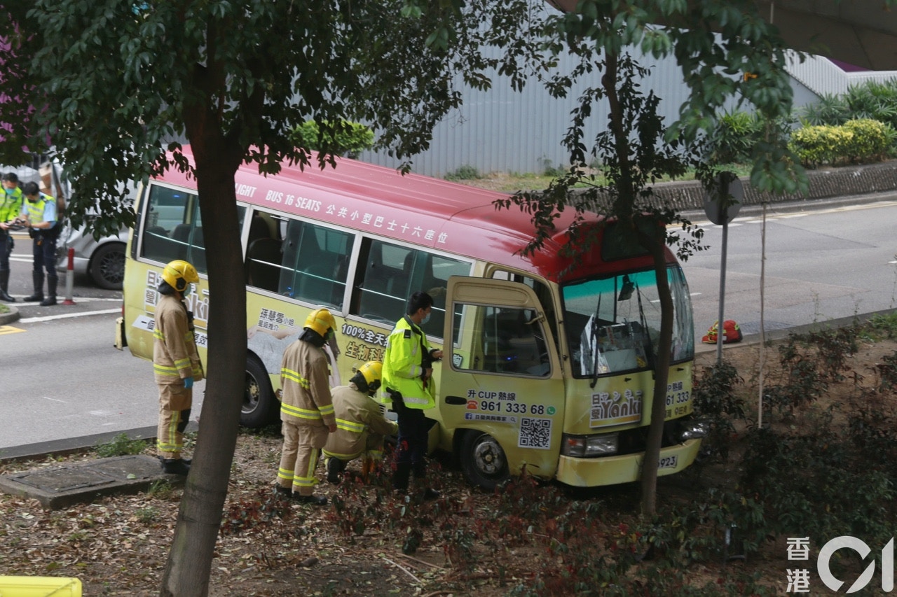 # U0 [: }6 D6 u* [小巴最終剷上石壆花槽上。(鄧栢良攝)