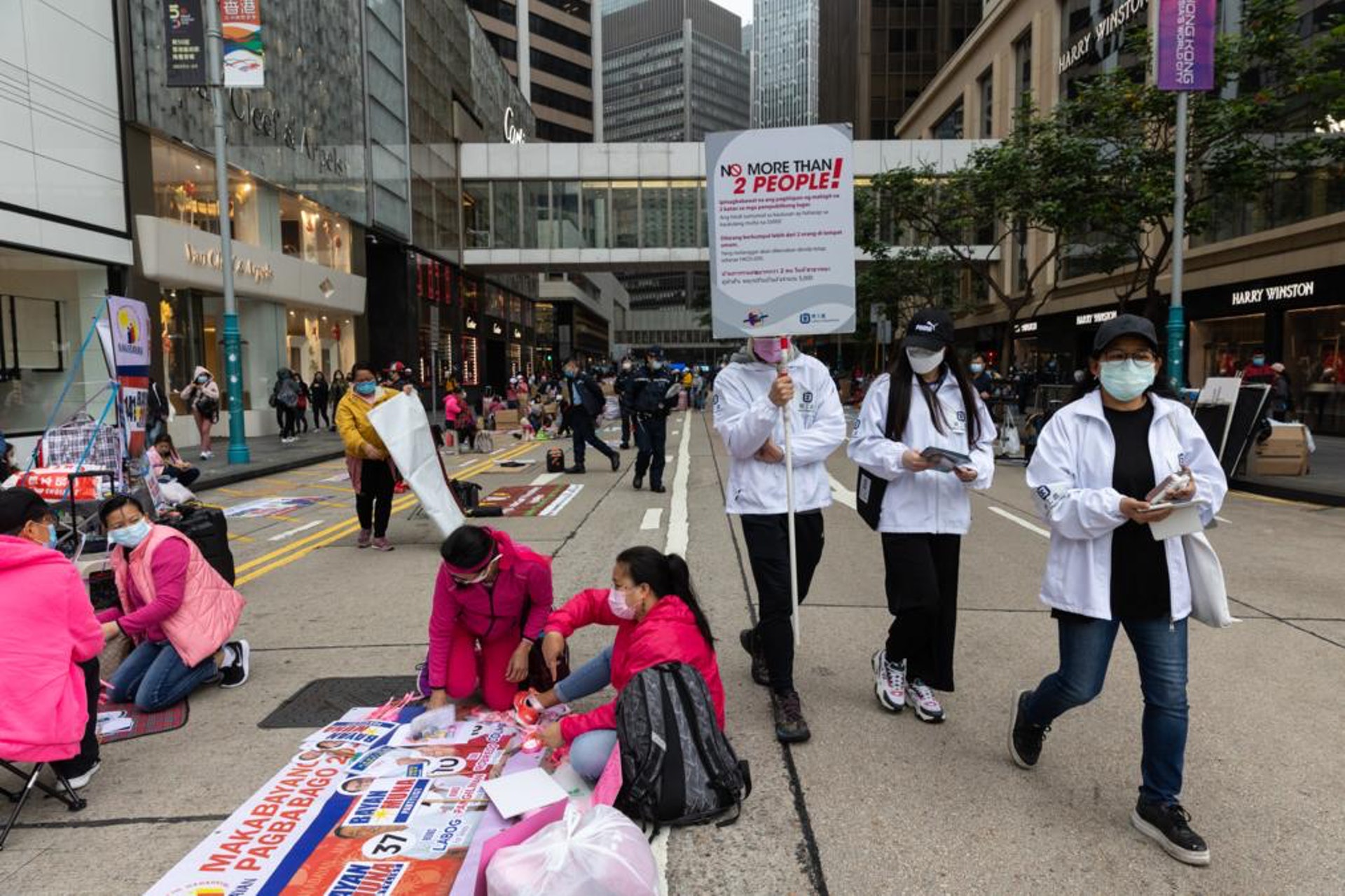 政府表明會對外傭周日聚會從嚴執法,一旦發現超過兩人聚集,會即場給予一萬元定額告票。(資料圖片)