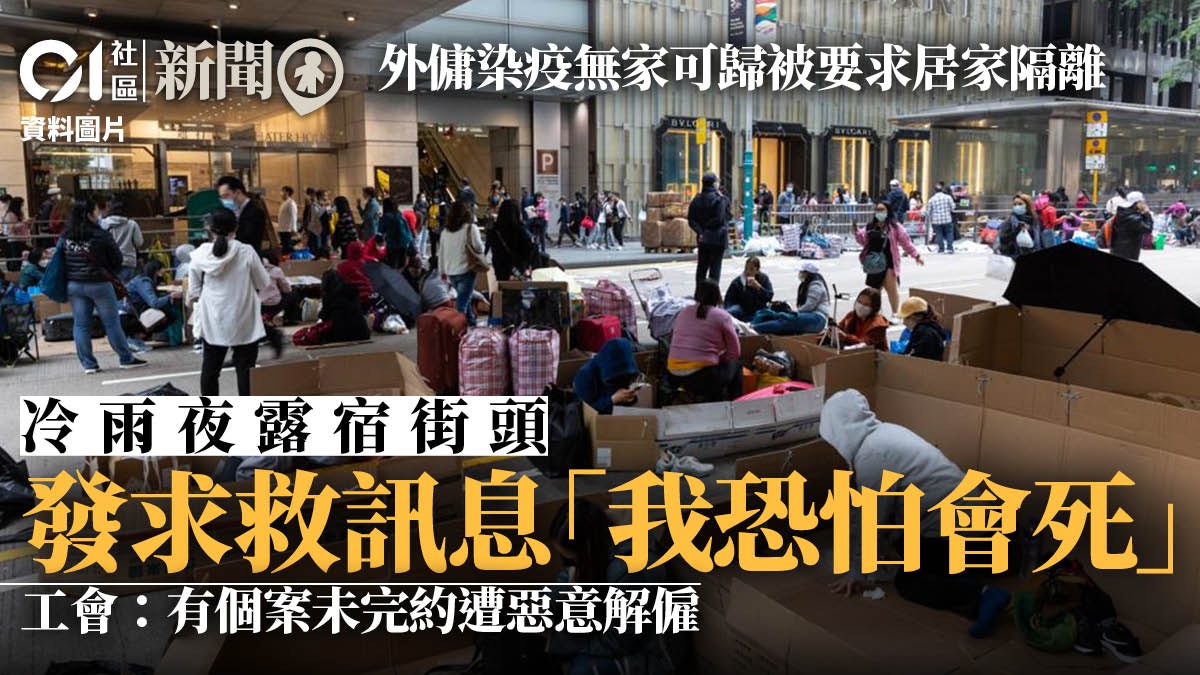 8 e/ f7 N- S$ }3 C特首林鄭月娥周五表明因應限聚令收緊至2人,將會對外傭於假日聚餐從嚴執法,然而外傭一旦染疫,卻被解僱及流落街頭,隨時造成大規模社區感染。非政府組織家傭匡扶中心日前至少接獲9宗外傭求助個案,她們經檢測確認為陽性後,因無法即時入院而被衞生署要求家居隔離,當中部分人被僱主即時解僱,部分人因完約沒有去處,一度要在寒雨中留宿街頭,有團體要求勞工處徹查是否違反僱傭條例。