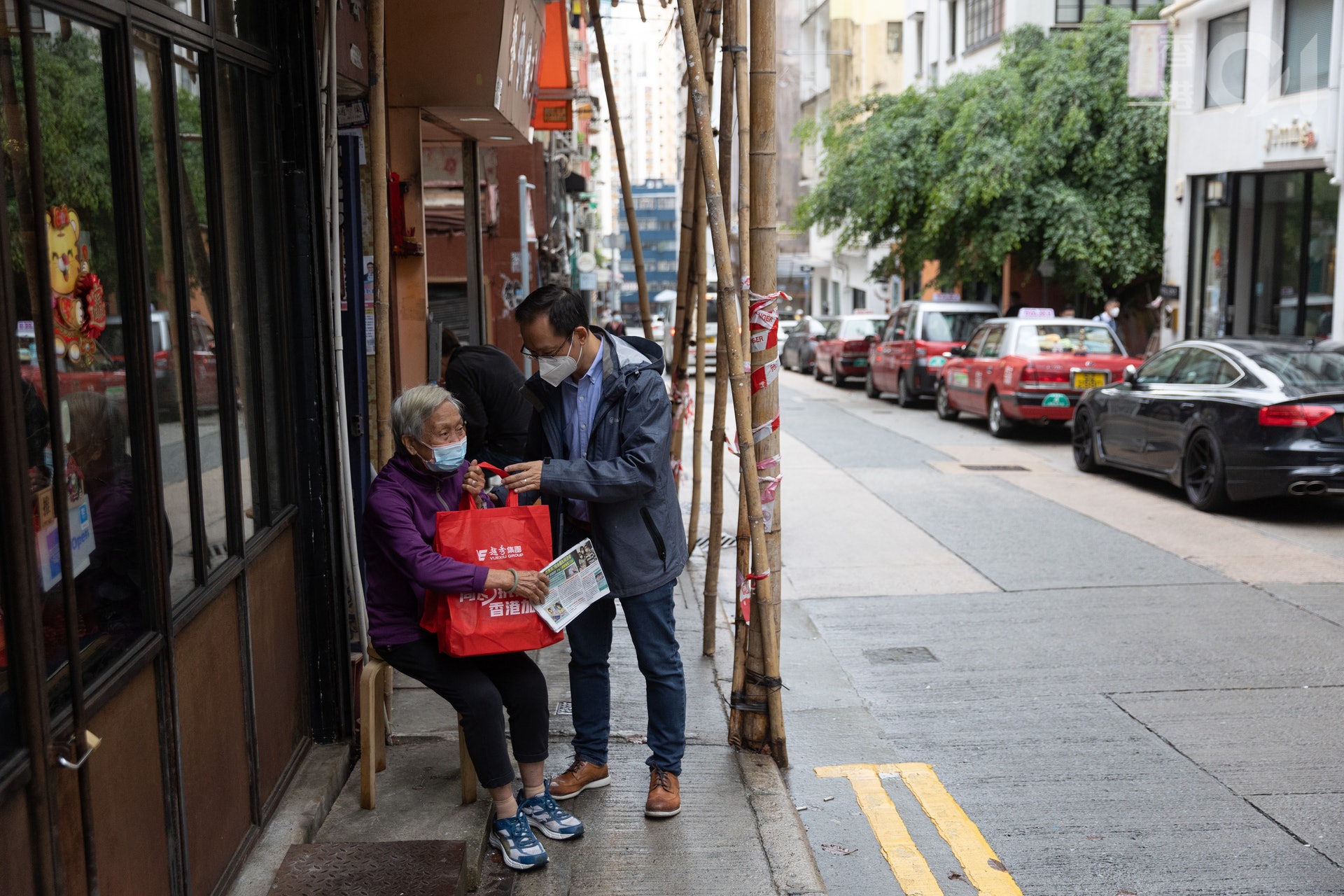 9 o) @' Z" r; X( W6 Ztvb now,tvbnow,bttvb立法會議員關愛獨居長者行動日,向長者派發防疫包。(廖雁雄攝)8 J7 a1 L; K, |9 ^& G* \