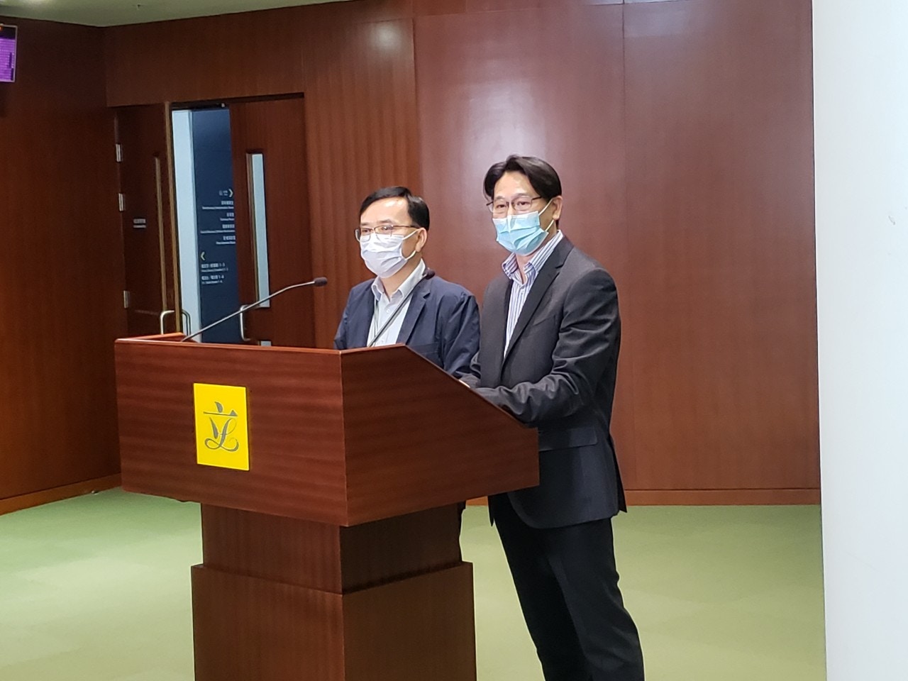 ' r% N8 r1 L# c工聯會議員黃國(左)、梁子穎(右)。(林劍攝)5 m' ~- H1 x* s& E