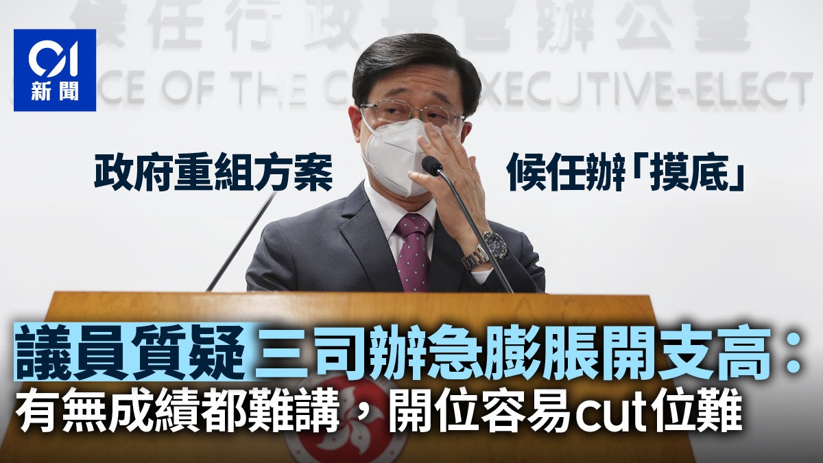 0 v" P+ [( k V M) Q7 K三司辦公室增D3官員除了增設3名副司長,李家超亦建議加強三司辦公室的公務員人手,包括在各司長辦公室增添一名首長級人員(首長級薪級第3點)或首席政府律師,以及其他非首長級支援人員。據聞有議員質疑有否必要,認為辦公室架構過度膨脹,「人多係咪真係好辦事?」