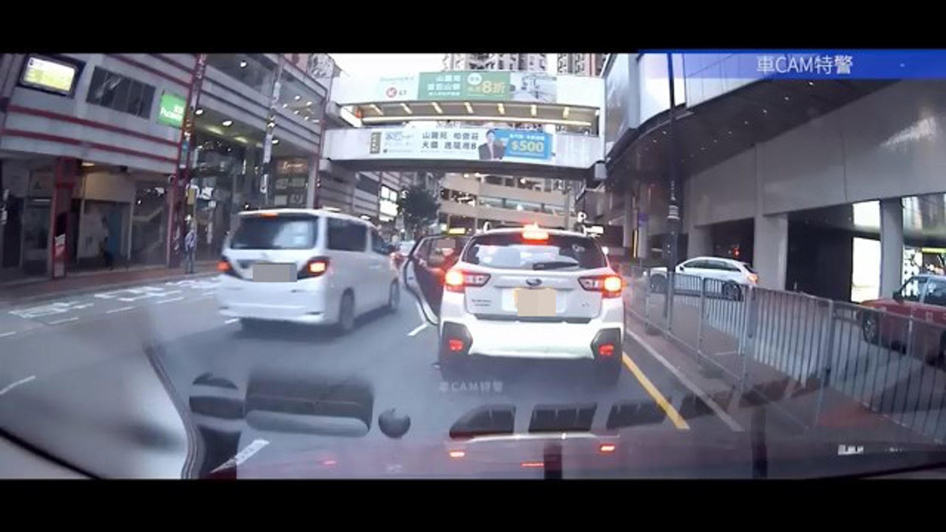 網上近日瘋傳一段影片,有男司機於沙田新城市廣場三期排隊等入停車場時,突然被一架白色私家車於讓線「打尖」插隊,男司機不滿響咹投訴,白色車疑似女司機則下車反駁「無規定排隊係咁樣排!」(影片截圖)