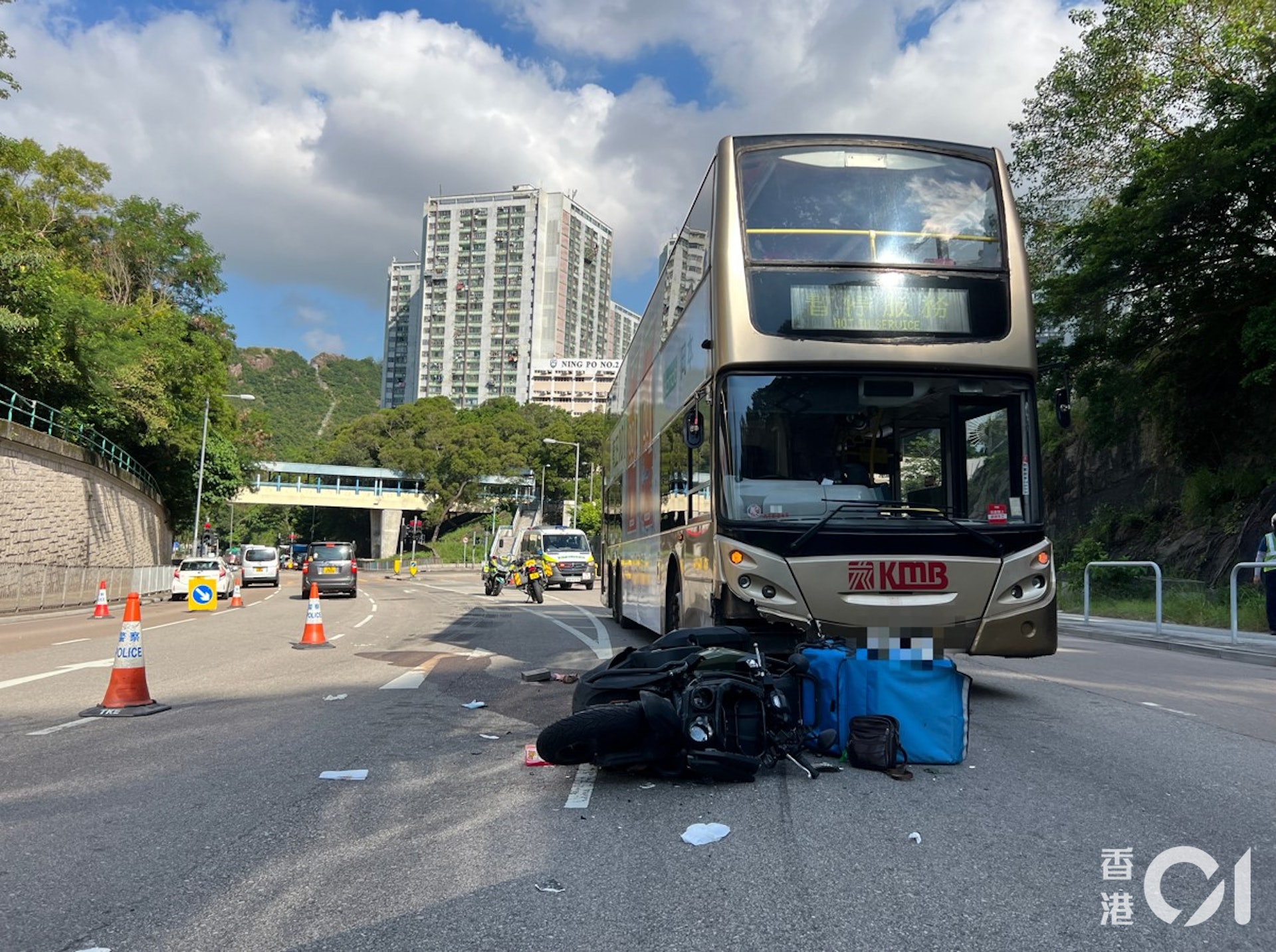 % \7 v9 v- x6 P" @& i% z/ \$ z公仔箱論壇今日(26日)早上7時許,秀茂坪順安道近秀茂坪道交界,一輛巴士與電單車相撞。(翁鈺輝攝)% J! q4 Y. }( q0 u0 Y4 G8 z6 u