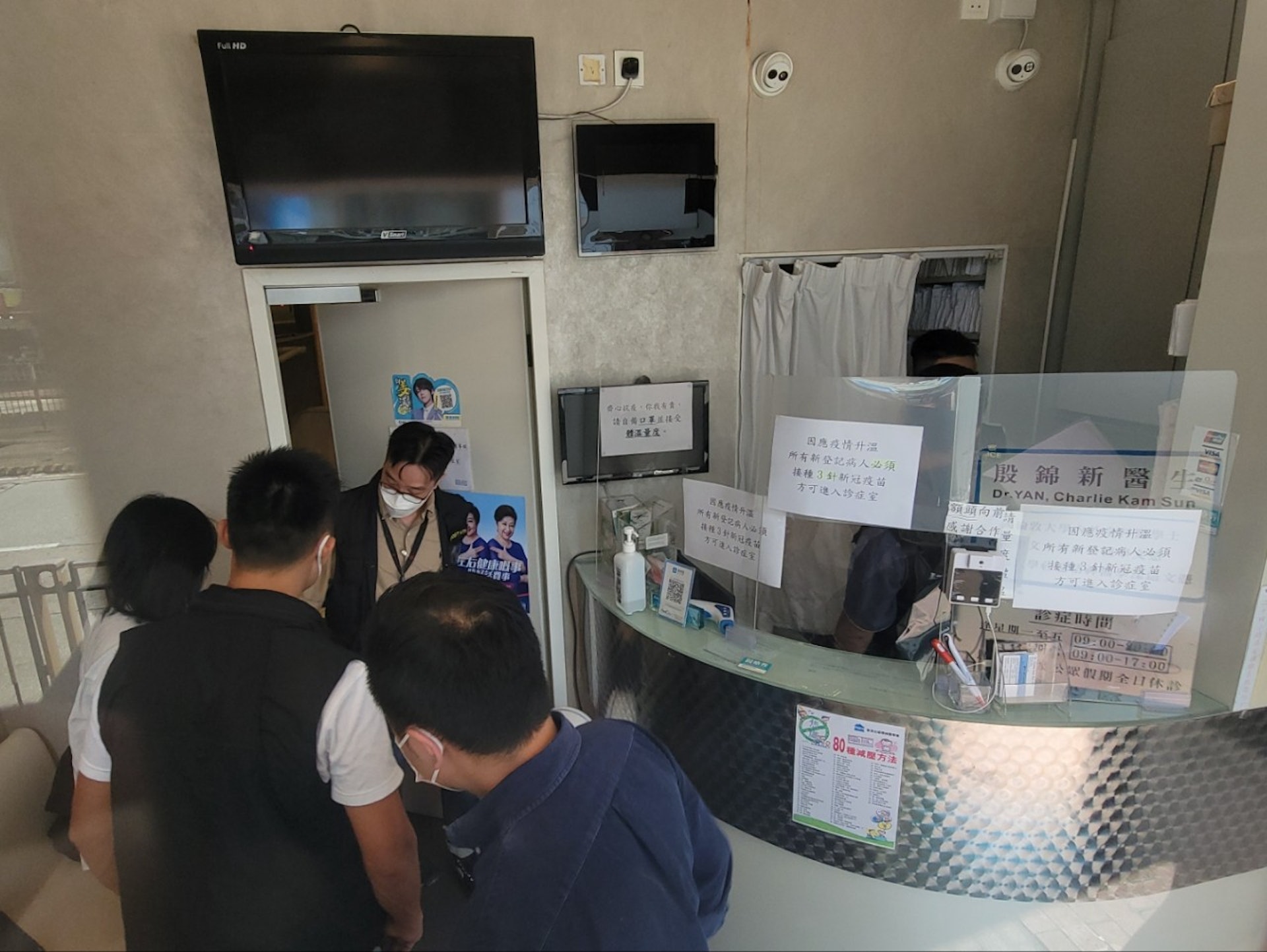 警方9月22日先後拘捕三名濫發「免針紙」醫生,警方人員到元朗殷錦新醫務中心調查,翻查病人醫療記錄。(蔡正邦攝)公仔箱論壇; l, S, G, q6 S( Z