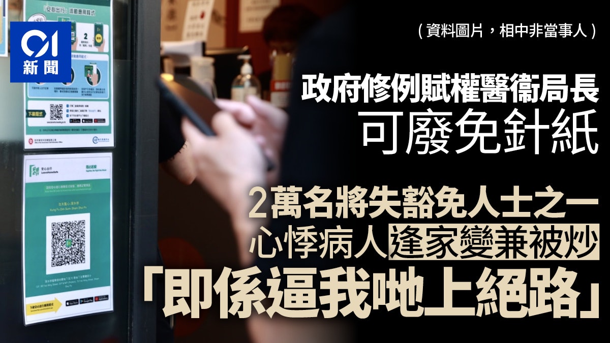 患有心悸情況兼有心臟病家族病史,以及有三高、糖尿病等長期病患的陳女士(化名),現時持有其中一名被指涉濫發「免針紙」私家醫生的接種疫苗豁免書,即是2萬名將失豁免資格人士之一。她憂慮「免針紙」一旦報廢後,將難以續取豁免:「我哋真係有醫療原因先唔打針,依家咁樣一刀切,即係逼我哋上絕路。」