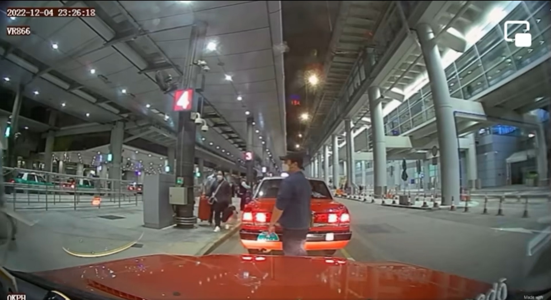 網上流傳一段行車記錄儀影片(車CAM),片段顯示,上周日(4日)晚上11時27分機場的士候車區,一名的士司機在車尾箱擺放乘客行李時,後方的士突然衝前,將他如三文治般夾在兩車之間,同時又被塌下的車尾冚砸中。途人及機場職員見狀立即協助倒車救出司機。