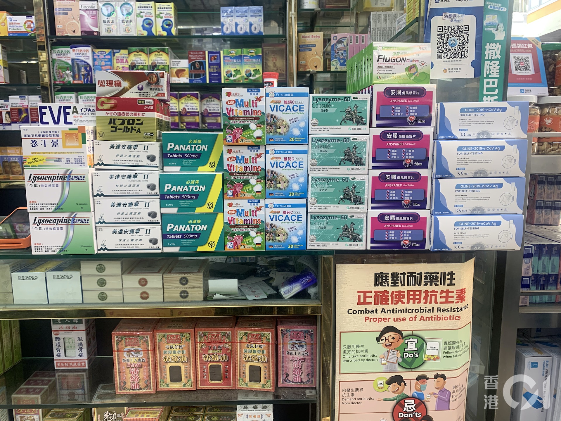 市面部份藥房仍有銷售其他牌子的撲熱息痛,但有藥房表示近日需求大增,來貨價稍有上升。(陳葆琳攝)