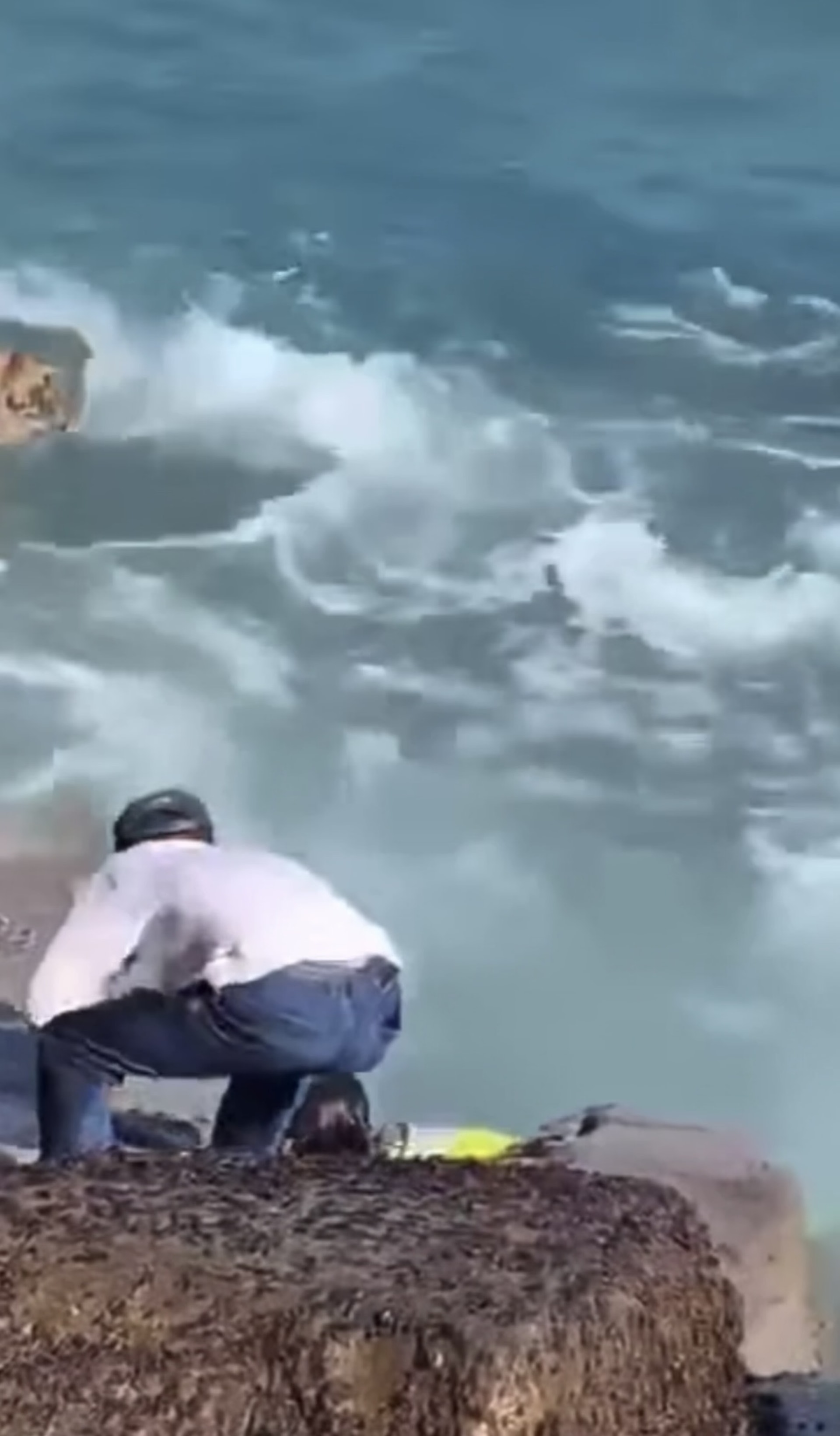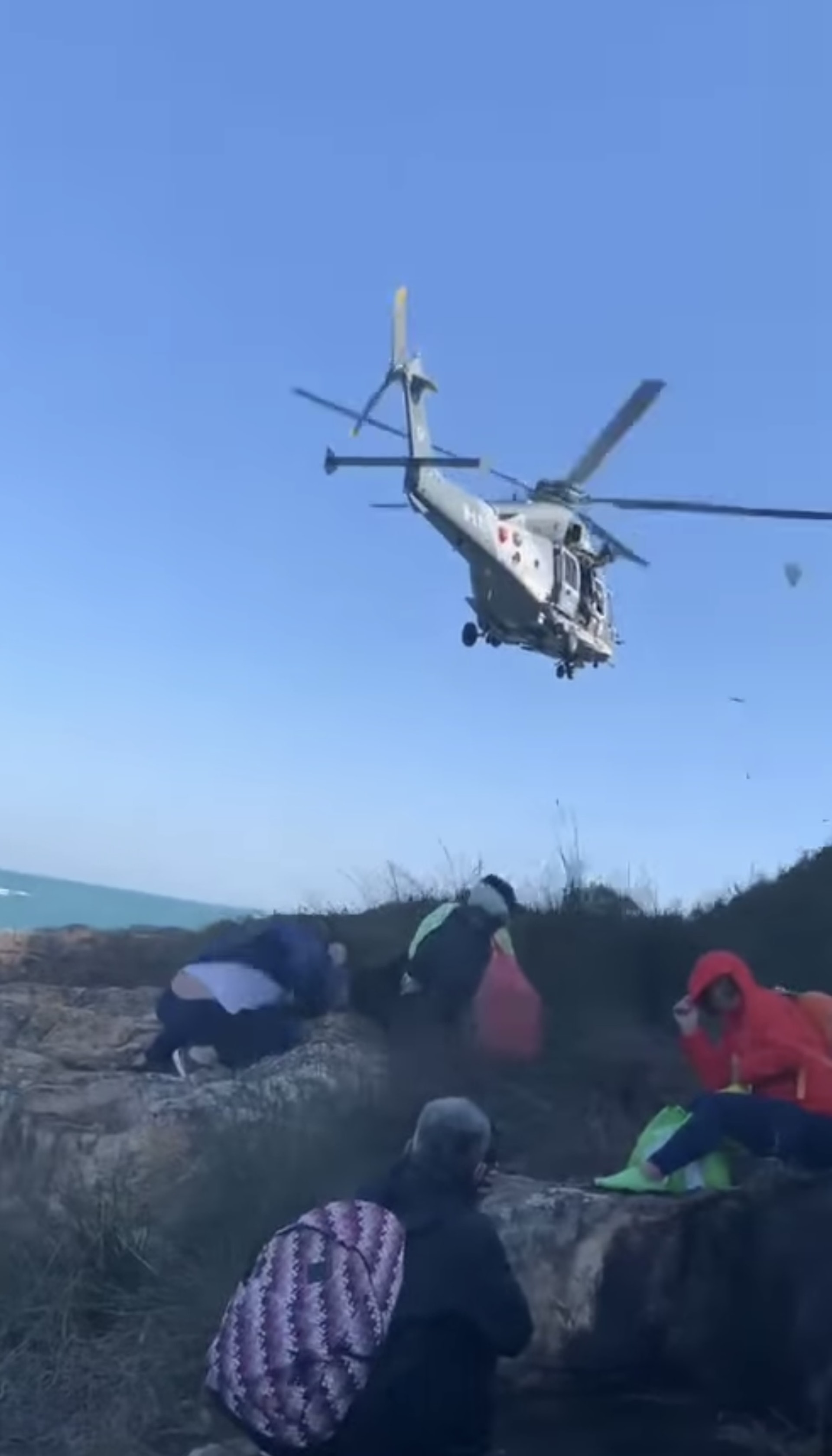 白衣男將女事主拉到岸邊後,疑氣力不繼,多次回頭叫其他人幫忙,更一度跣腳跌倒,險象環生。其後再有兩男相繼上前,協助將女事主拉回岸上。女事主初時疑未恢復清醒,幸之後回復知覺並作嘔吐狀。另一片段顯示,政府飛行服務隊派出直升機,將女事主吊到機上。