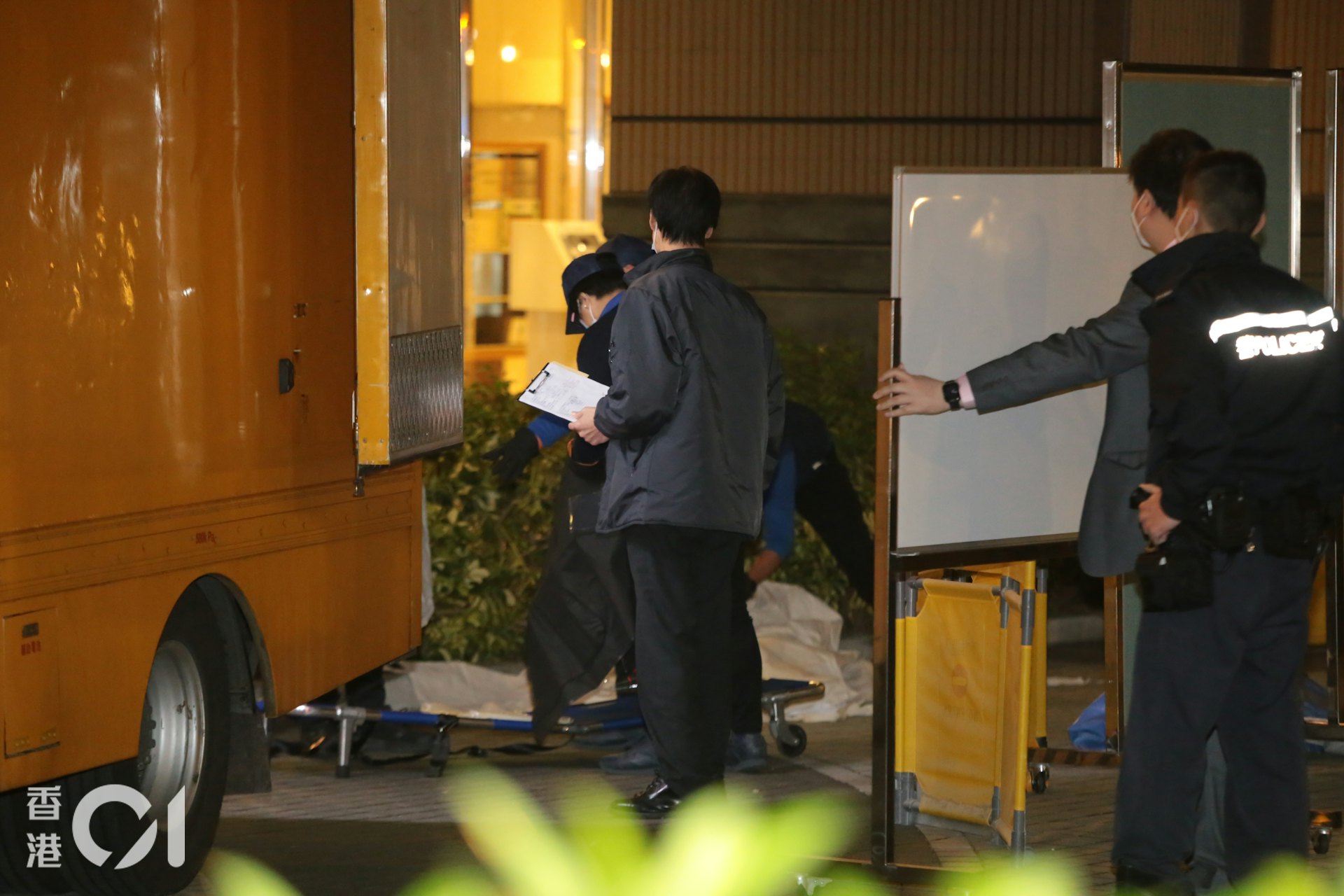 青衣綠悠雅苑2座一名女外傭疑抹窗期間失足墮樓,當場死亡,遺體由仵工運走。(梁偉權攝)