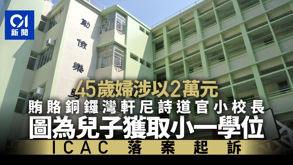 廉政公署今日(18日)落案起訴一名45歲家長,涉嫌以20,000元行賄軒尼詩道官立小學(銅鑼灣)一名校長,企圖為兒子獲取該校小一學位,事件因校方向廉署舉報貪污而揭發,該家長被控一項向公職人員提供利益罪名,獲廉署准予保釋,以待周五(20日)在東區裁判法院答辯。