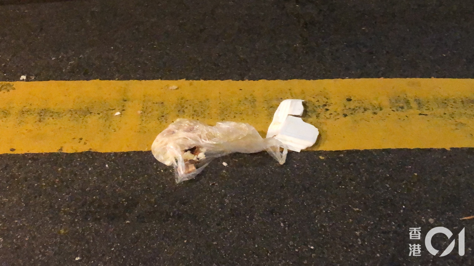 9 ]8 I+ |4 Z# \現場遺留大灘血迹及一盒燒味飯。(林振華攝)