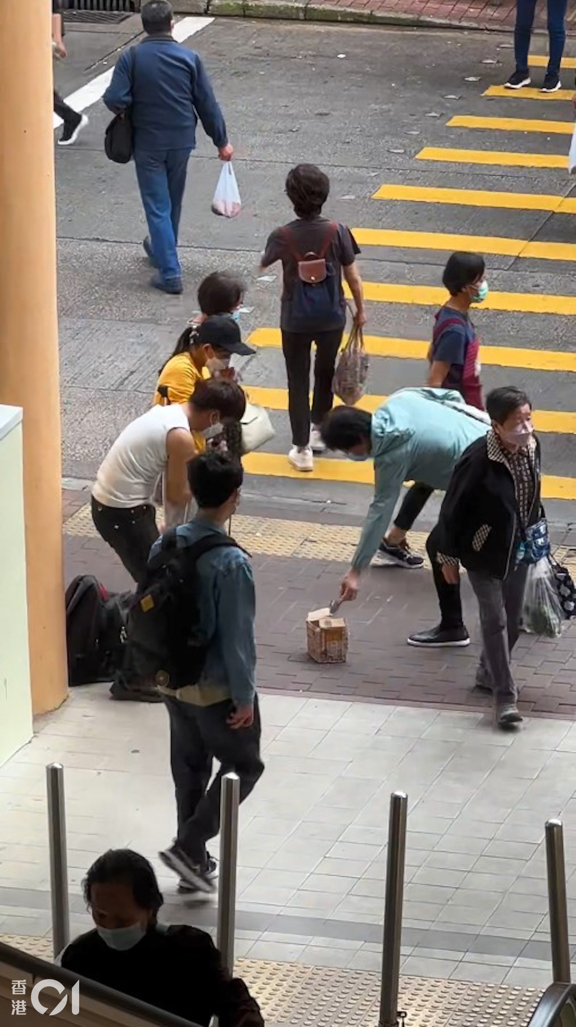 ; l1 H2 o9 P" _9 C9 j公仔箱論壇涉案男女其後轉到長沙灣保安道街市外繼續賣唱,吸引大批市民「打賞」,當中不乏身穿校服的小學生。(香港01記者攝)