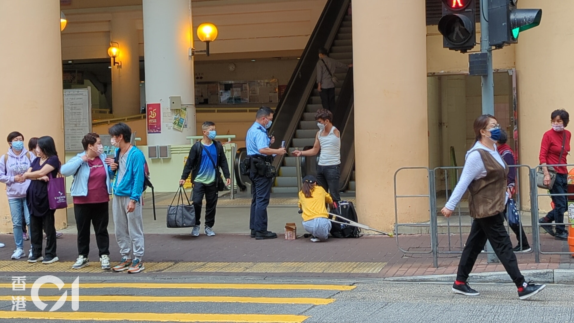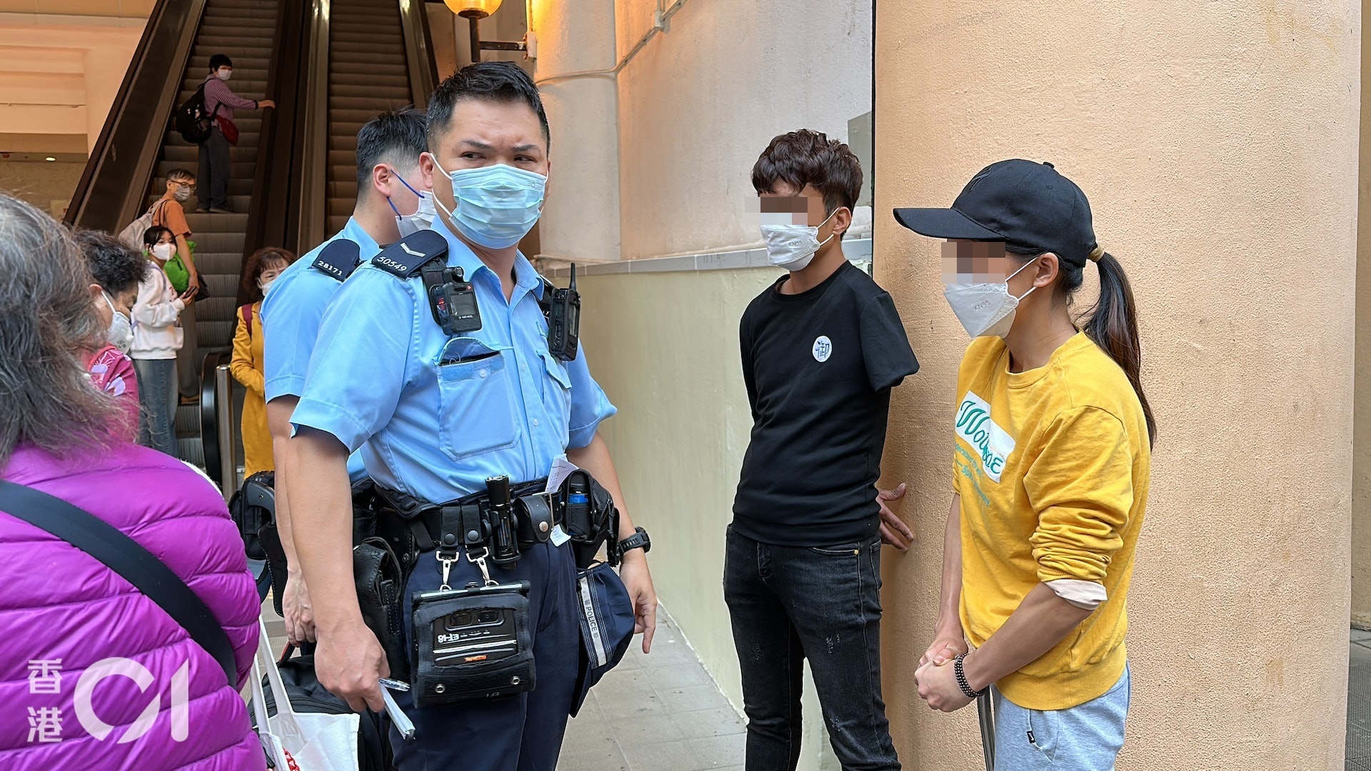 下午5時許,有市民不堪賣唱男女帶來噪音滋擾,報警求助,警員到場調查。(香港01記者攝)