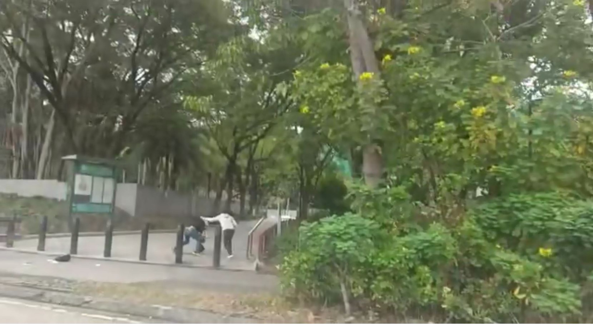 女事主被搶去袋,劫匪逃去。(網上影片截圖)