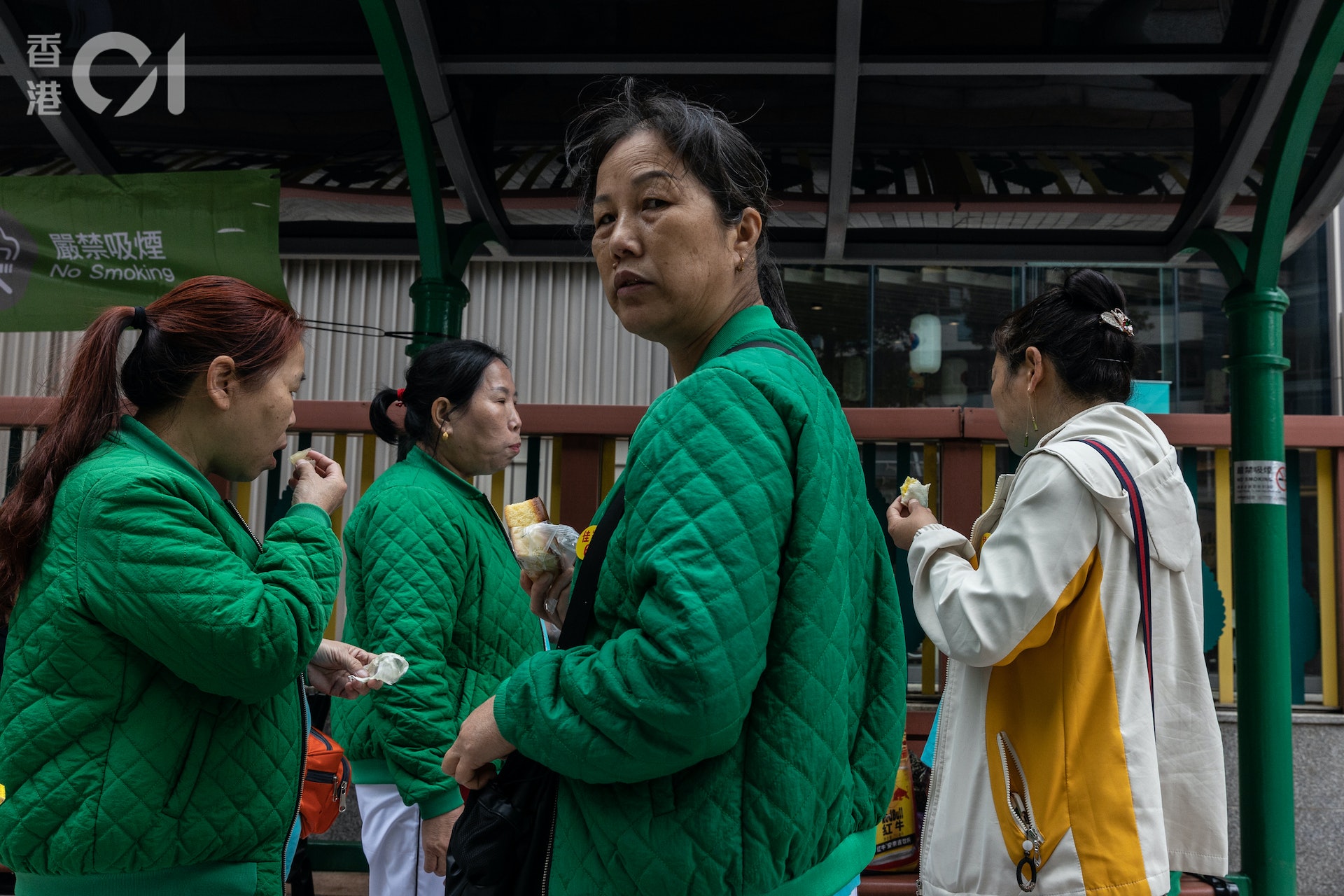 團友用膳後到室外吸煙。(梁鵬威攝)公仔箱論壇4 X) A& L8 n' S5 x