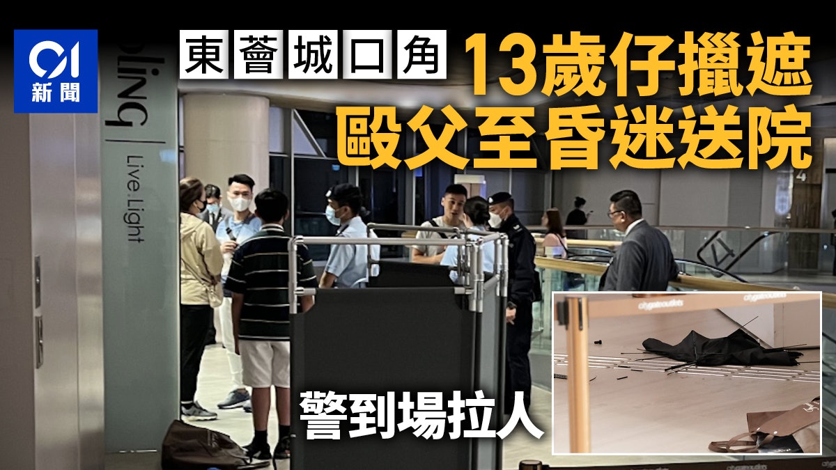 東涌東薈城發生父子打鬥案。今晚(7日)約7時,警方接報一對父子在東薈城4樓一間服飾店外,因事大打出手,父親被雨傘打至頭部受傷、手部擦傷,昏迷由救護車送北大嶼山醫院救治,送院時有呼吸,其後回復清醒。涉案13歲兒子涉嫌襲擊致造成實際身體傷害被捕。案件交大嶼山警區刑事調查隊第二隊跟進。
