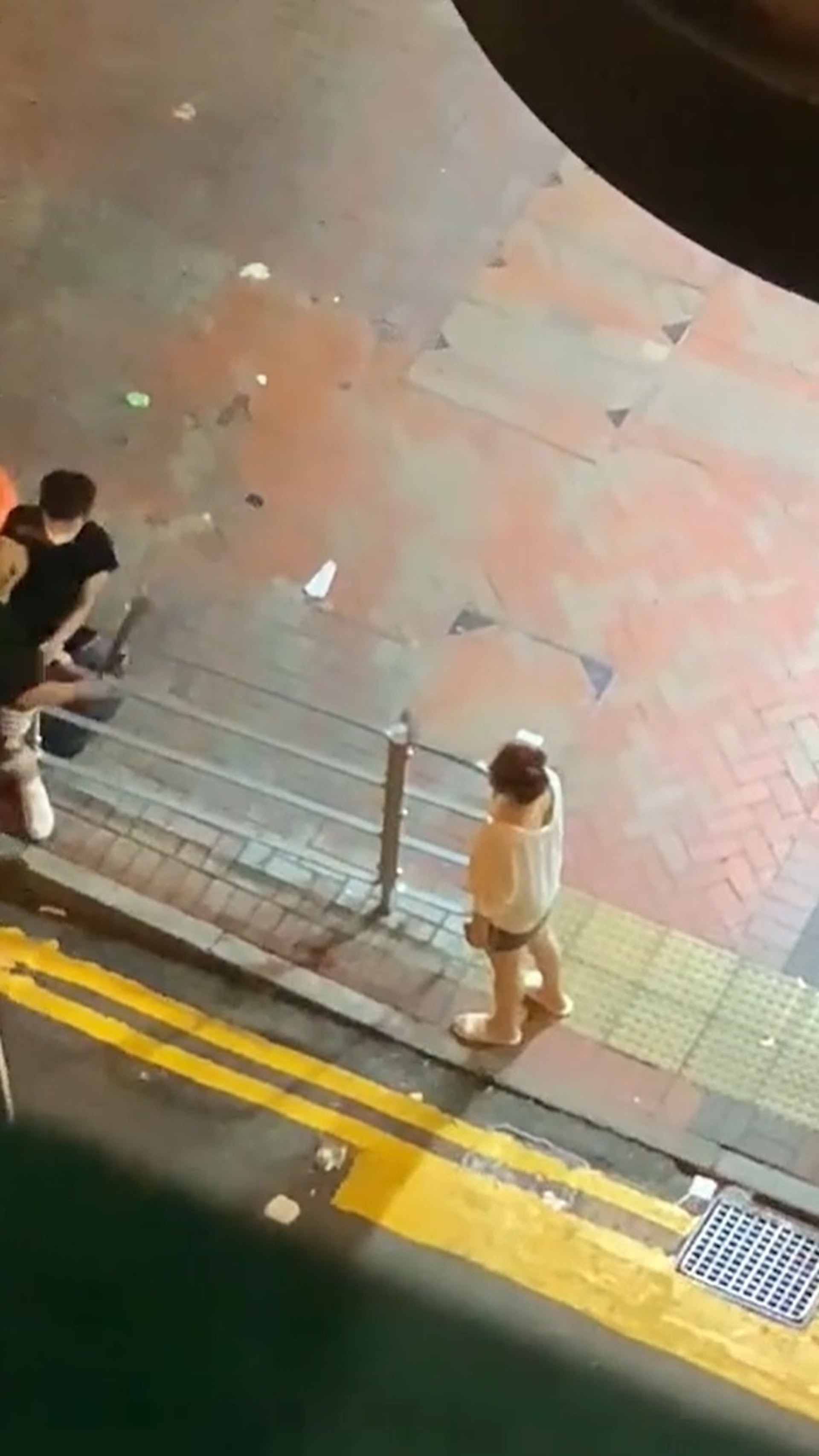 網上今日(9日)流傳兩段相關影片,顯示14歲刀匪在街頭就擒,被一名金髮男子按在欄杆,怒氣沖沖多次用利刀拍打其頭部,不斷大聲爆粗狂罵「X你老母」、「邊X度」、「你上嚟打劫講對唔住?」,引來多名途人圍觀及用手機拍片,金髮男甚至除下少年口罩暴露其容貌,警員接報到場,一度將手放在腰間槍袋戒備。