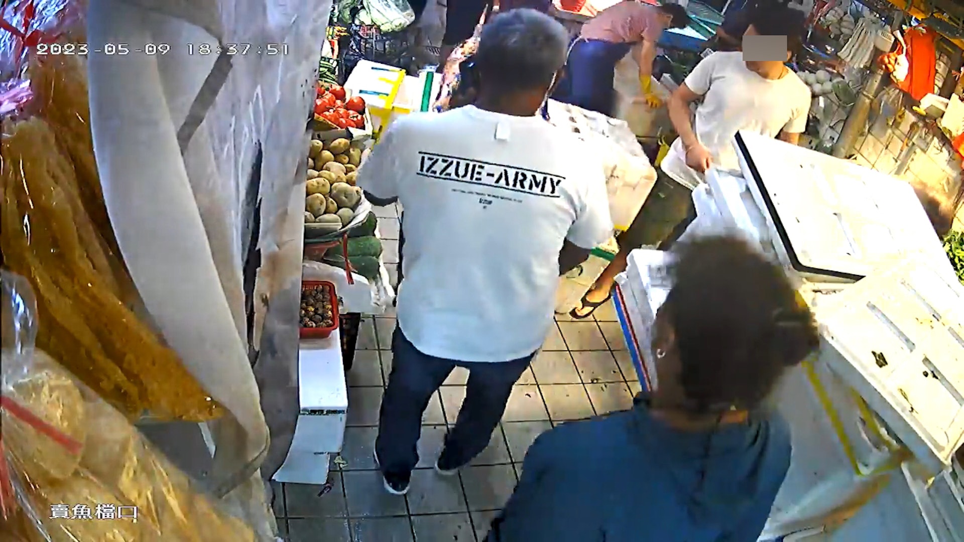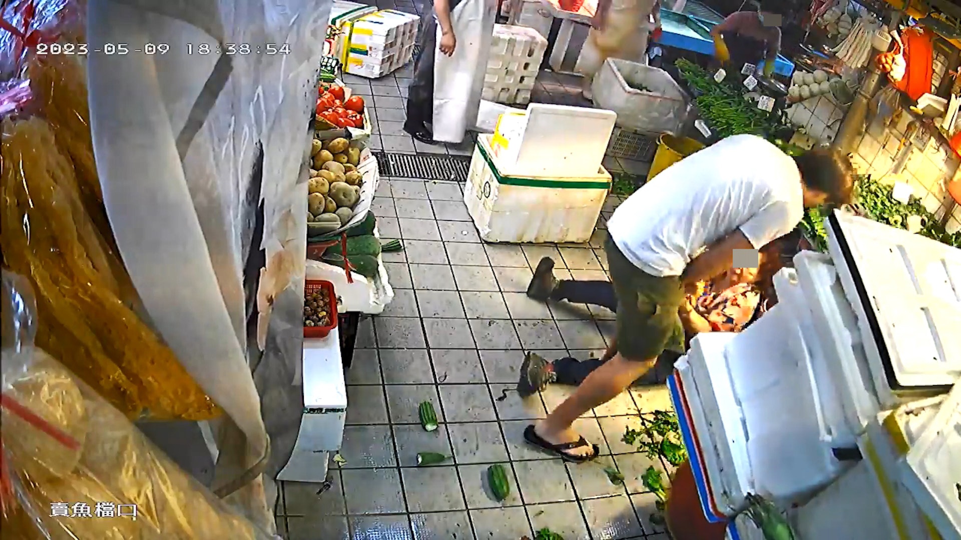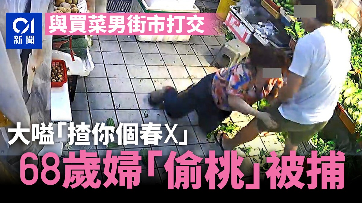 事發片段相信是由其中一間店舖的閉路電視拍攝。於昨日(6月3日)中午被上傳到多個社交網站群組。就該閉路電視片段所見,事發於5月,一名婦人在街市菜檔路中心,將一車發泡膠箱掉落地上,但她掉落第二個發泡膠箱時,蓋子砸到旁邊買菜的男子腳上,男子一腳將她的發泡膠箱踢走。大嬸將手上發泡膠箱放在男子腳邊,前去執被踢開的箱時,男子一手將她放下的發泡膠箱打飛,喝鬧「企喺度你仲係咁整埋嚟」。雙方因而展開激烈打鬥,更因婦人被推跌地上,最終出手「偷桃」反擊。