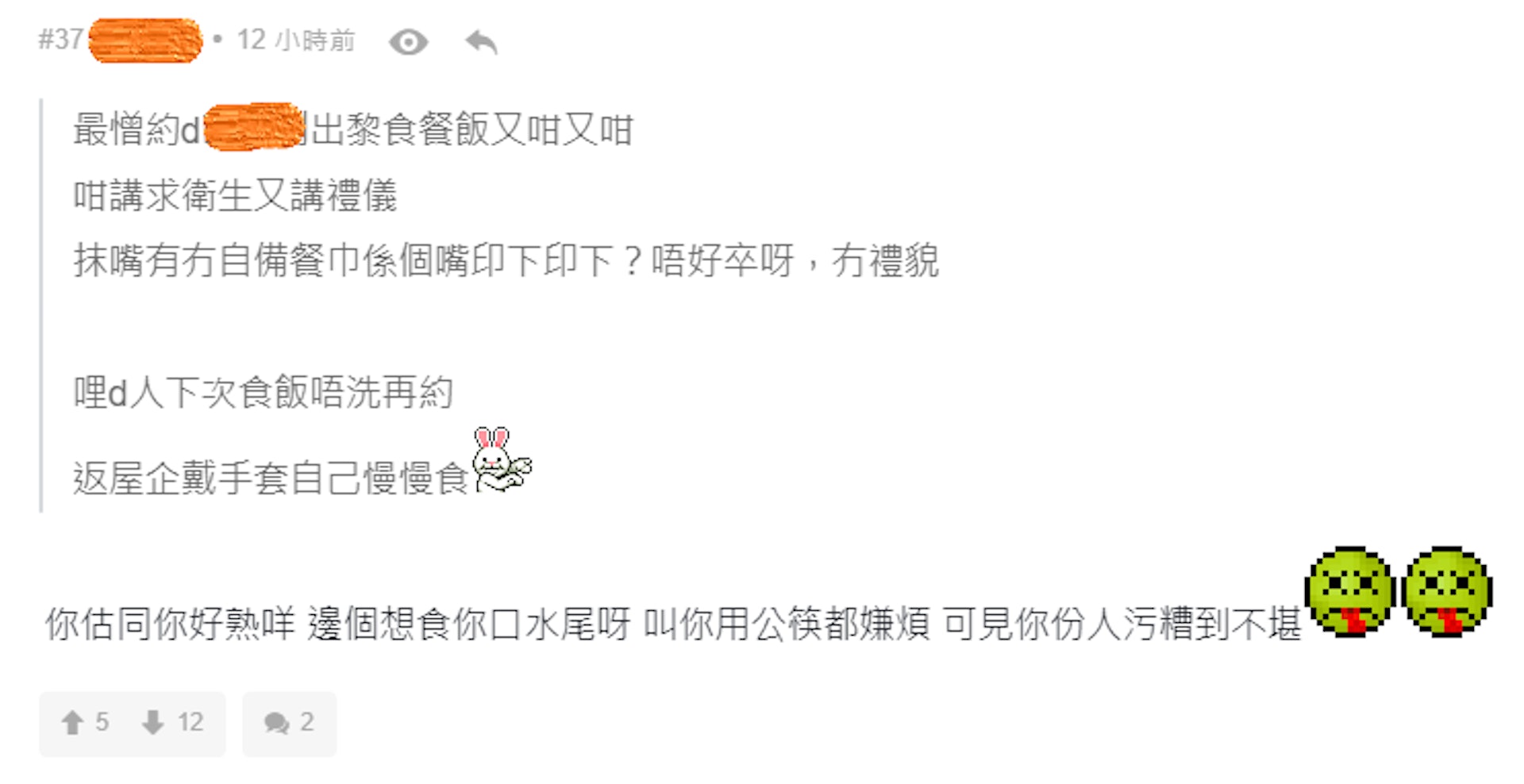 有網民力插香港人5大食飯肉酸行為!(截圖自連登討論區): g" R: c1 Q. S/ F/ Q