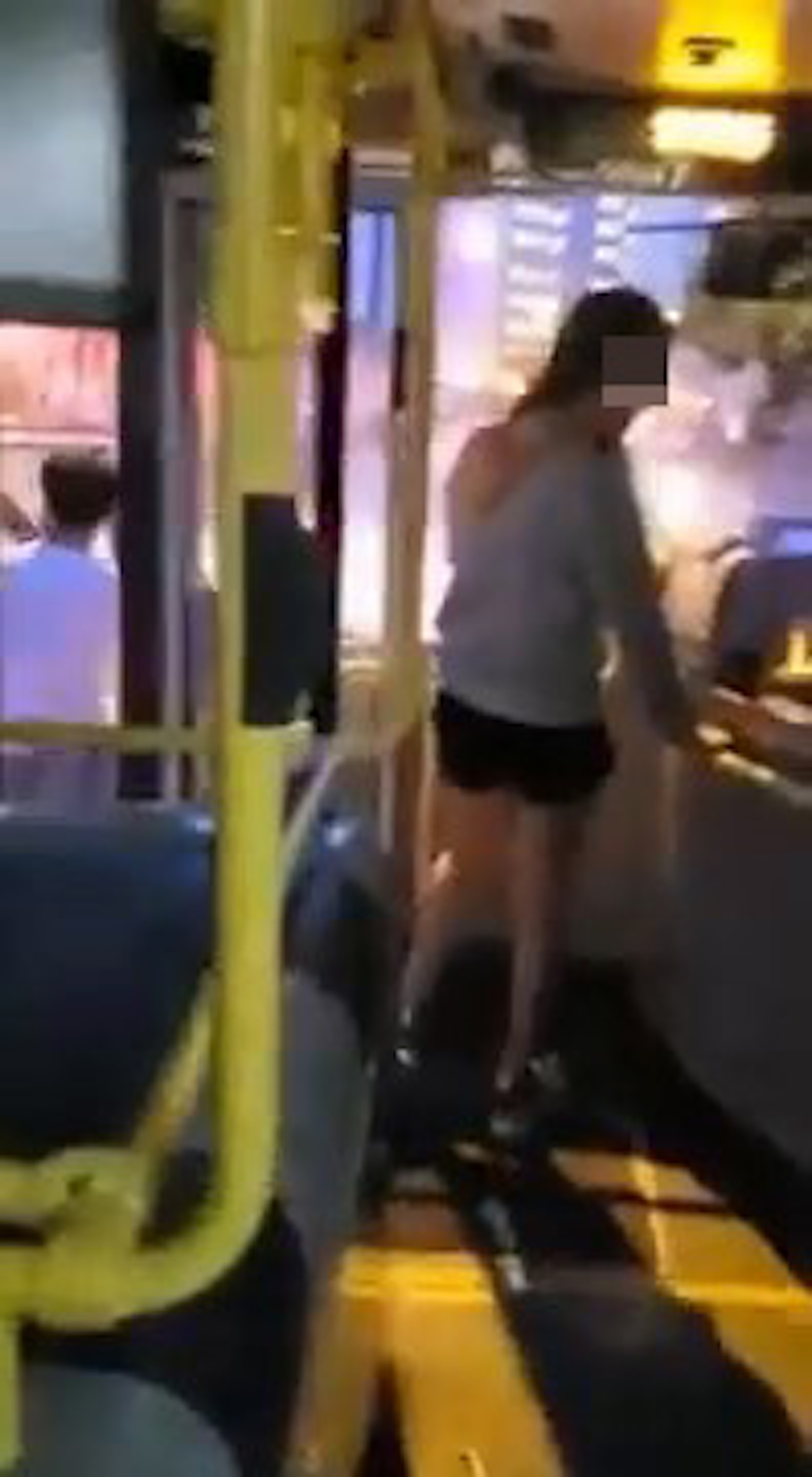5 e6 c9 s% G: E( k! j: `$ V公仔箱論壇影片見到,一名穿跌膊上衣、熱褲港女正在巴士上責罵車長,「我哋係唔X褪㗎喇!」,之後轉身走落巴士。(影片截圖), \4 ~, Z$ U! A. J' i/ b; g" V7 k