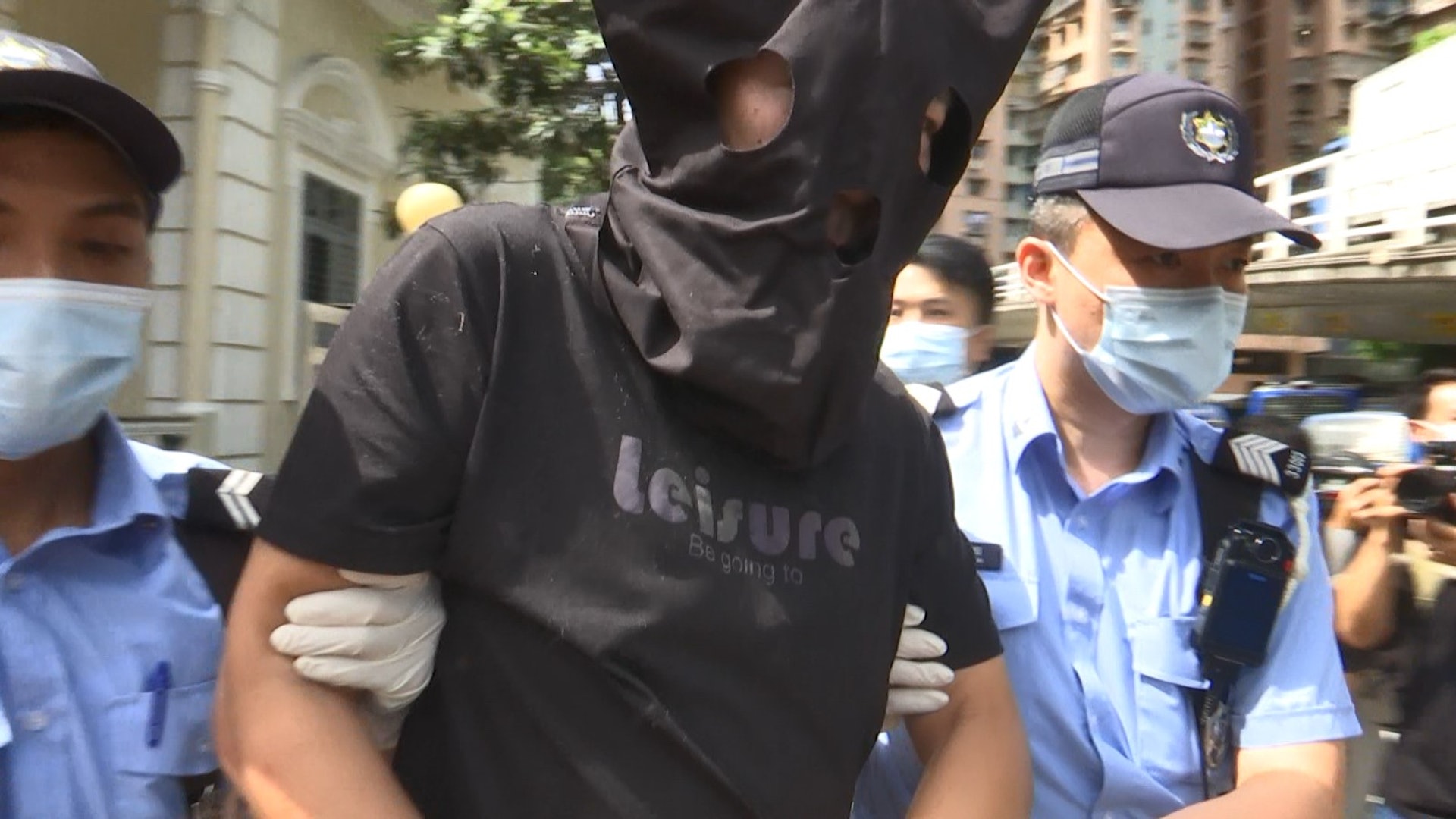 - u5 Z! S; m; O0 L: ^% }tvb now,tvbnow,bttvb疑兇黑布蒙頭、鎖上手銬由警員押走。(澳廣視片段截圖)- N5 {+ M0 w0 T7 Y& ?6 \