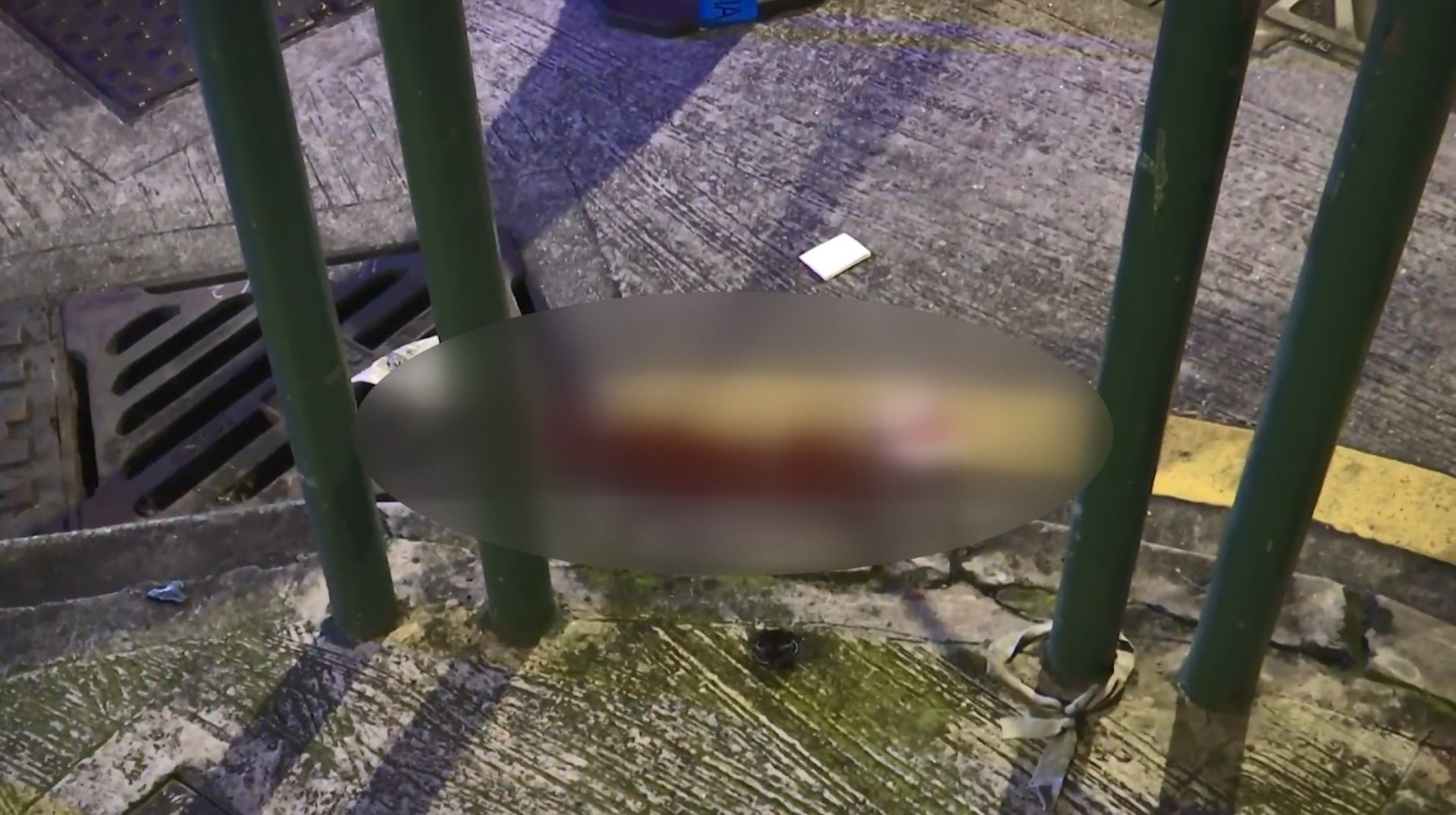 ' g! a+ T ^& ^* z7 A案發現場地面遺下一灘血迹。(澳廣視片段截圖)