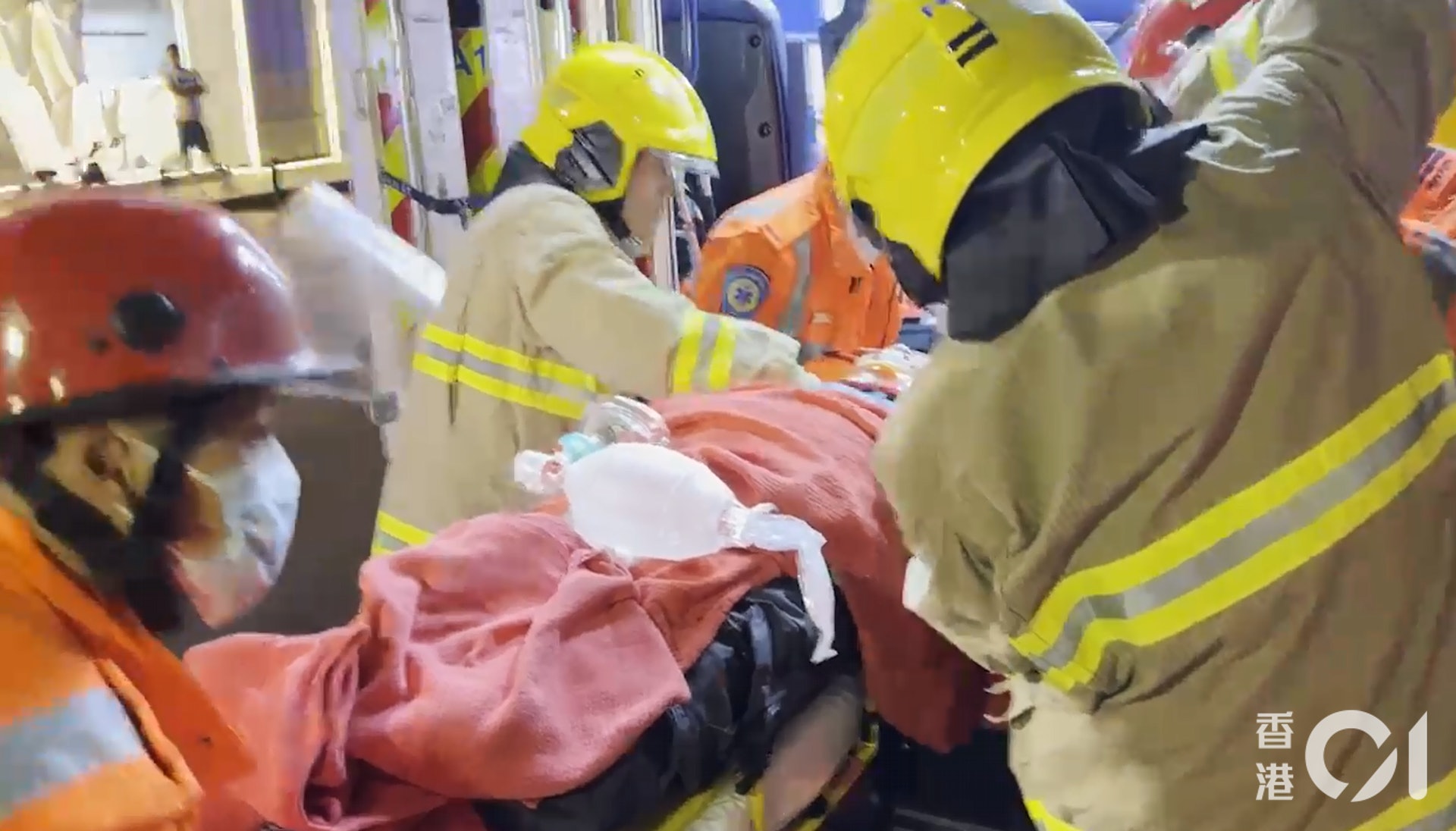 ; d4 }2 X8 u' J {: f) }2 K) `* `救護員支消防員為傷者急救。(魯嘉裕攝)公仔箱論壇6 C# W5 t% S) P& I* n