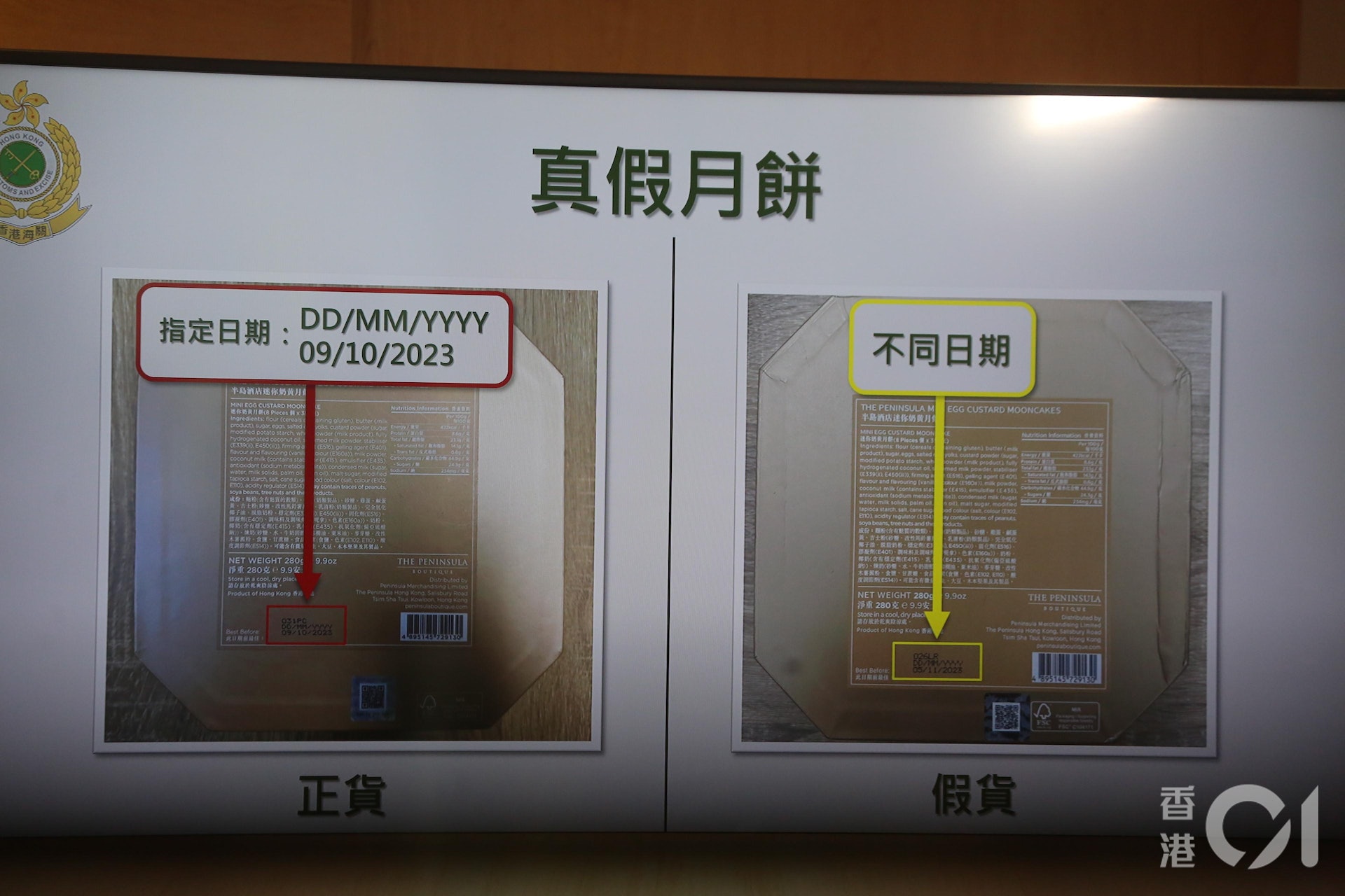 檢獲的冒牌月餅為「美心流心奶黃2023」和「半島酒店迷你奶黃月餅」,以正貨的七至九成價格銷售,主要抄襲正貨包裝盒外觀設計及註冊商標。海關形容「外觀上抄到八成似」,但市民仍可憑防偽特徵辨別真偽。