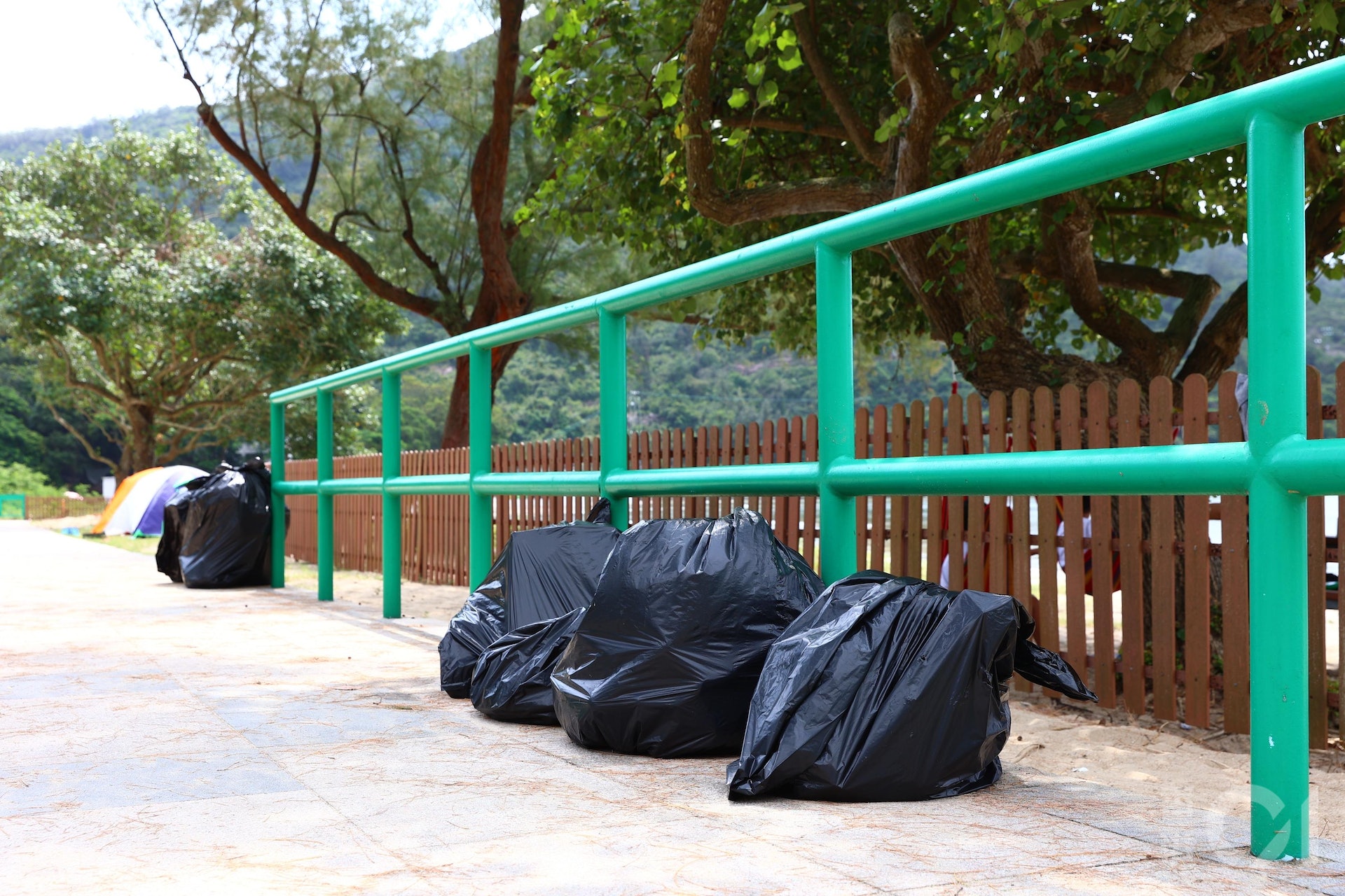 不少內地遊客愛到香港營地露營,在10月2日,大嶼山貝澳營地可見有多個帳幕紮營,垃圾大致收拾好。(鄭子峰攝)