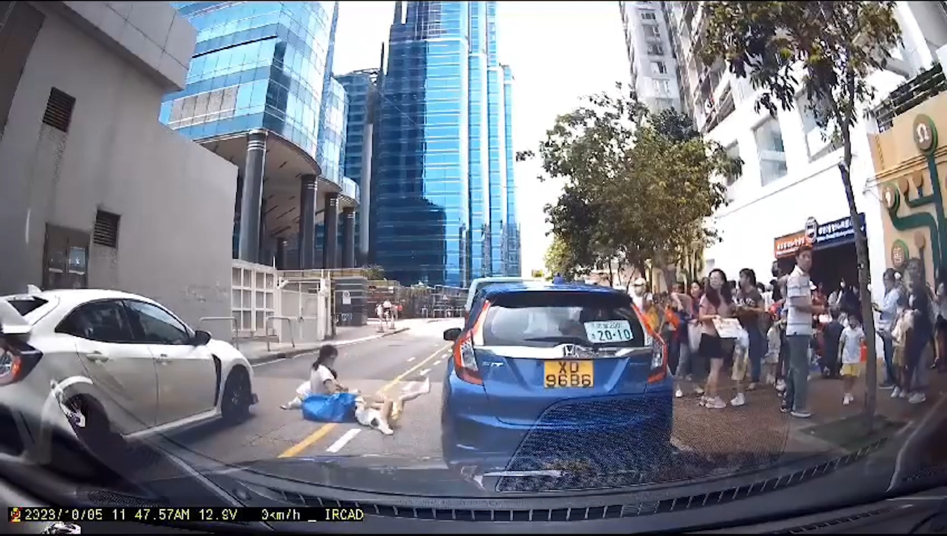 3人被撞後仍然清醒,母親隨即坐起,兩個孩子亦自行站起。在行人路上接送其他孩子的大批家長聞聲張望,發現3人被撞後,多名家長連忙上前查看他們的傷勢。肇事私家車則亮起死火燈,司機由撞到3母子至片段結束的30多秒間疑未及反應,未有即時下車。