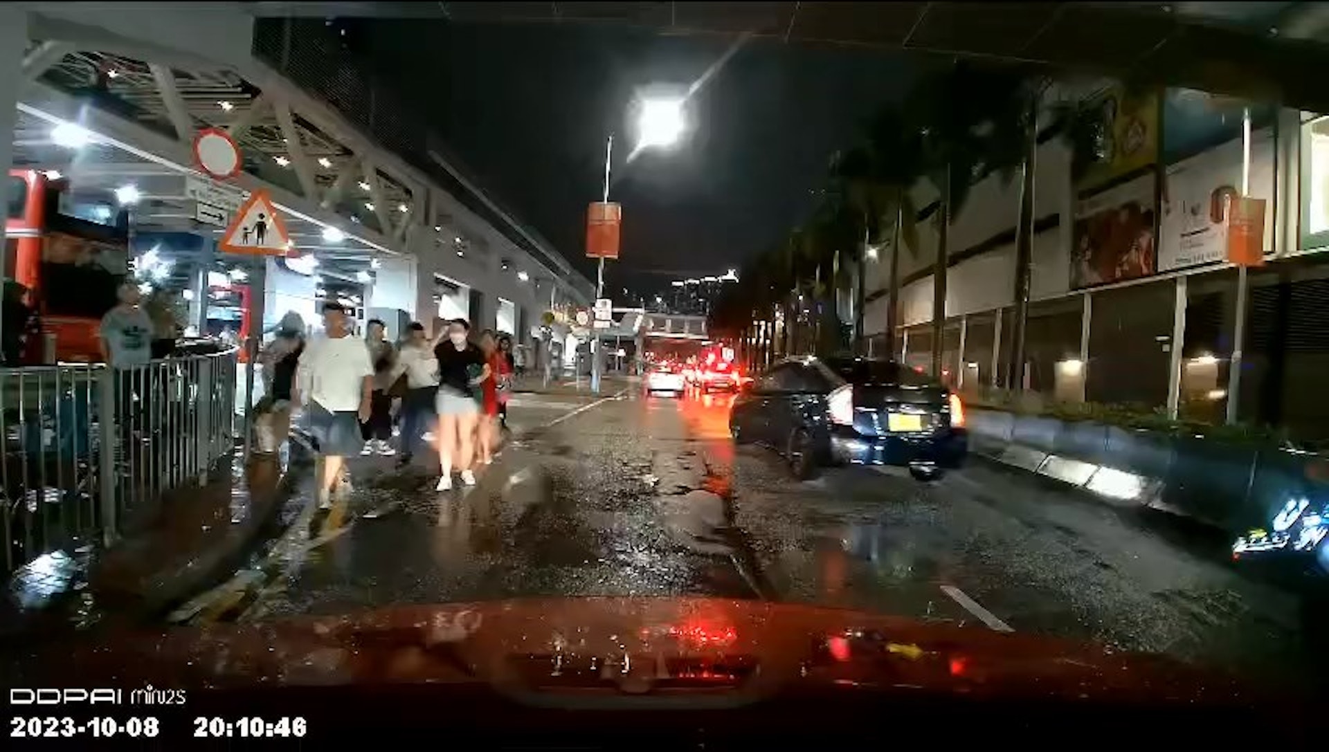 相關片段長約2分25秒,時間為昨(8日)晚約8時10分左右,當時九號烈風或暴風風力增強信號生效。片段甫開始,便見一輛懷疑市區的士在荃灣西站對開大河道「兜客」。司機不停向窗外市民查問:「去邊度?去邊度?元朗800蚊一個!8舊水一個元朗!」又以英語表示:「Eight hundred one people(person).」