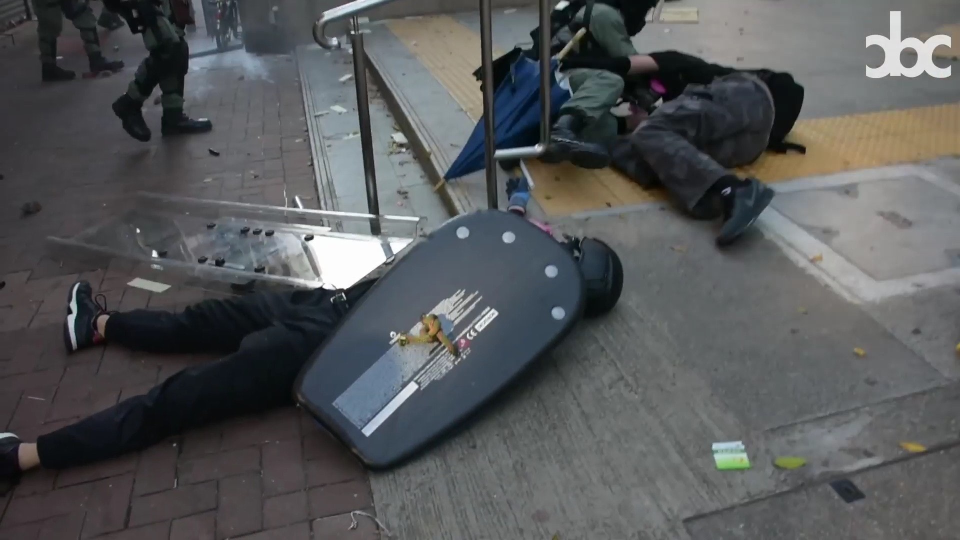 ! W7 ^& z' T1 `# s( S+ H7 m公仔箱論壇十一國慶,荃灣示威者中實彈,港大校園電視拍攝到他中槍一刻。(港大校園電視影片截圖)( m1 F3 f. a! b! _- X