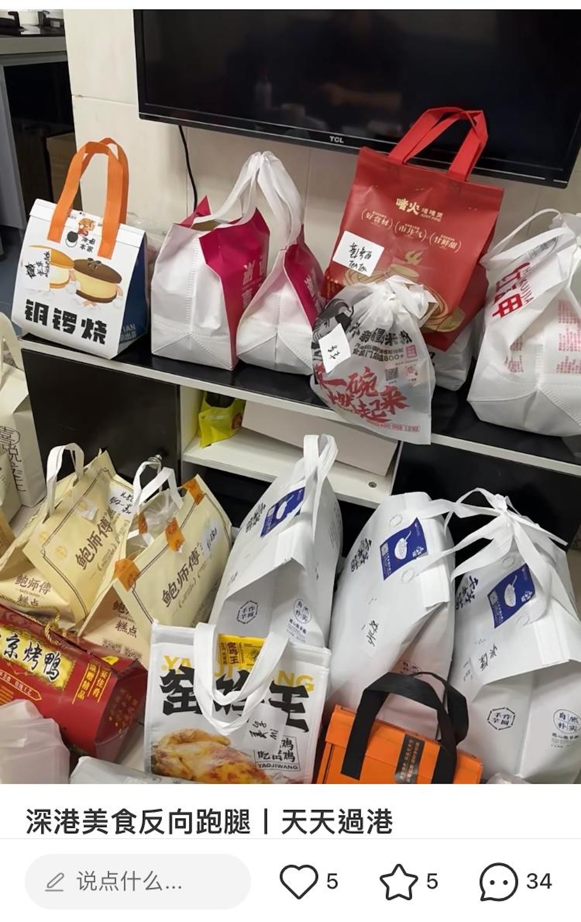 社交平台充斥大量逆向代購宣傳帖文,提供收費「跑腿」服務,可代買及代取內地外賣食物回香港交收。(小紅書圖片)