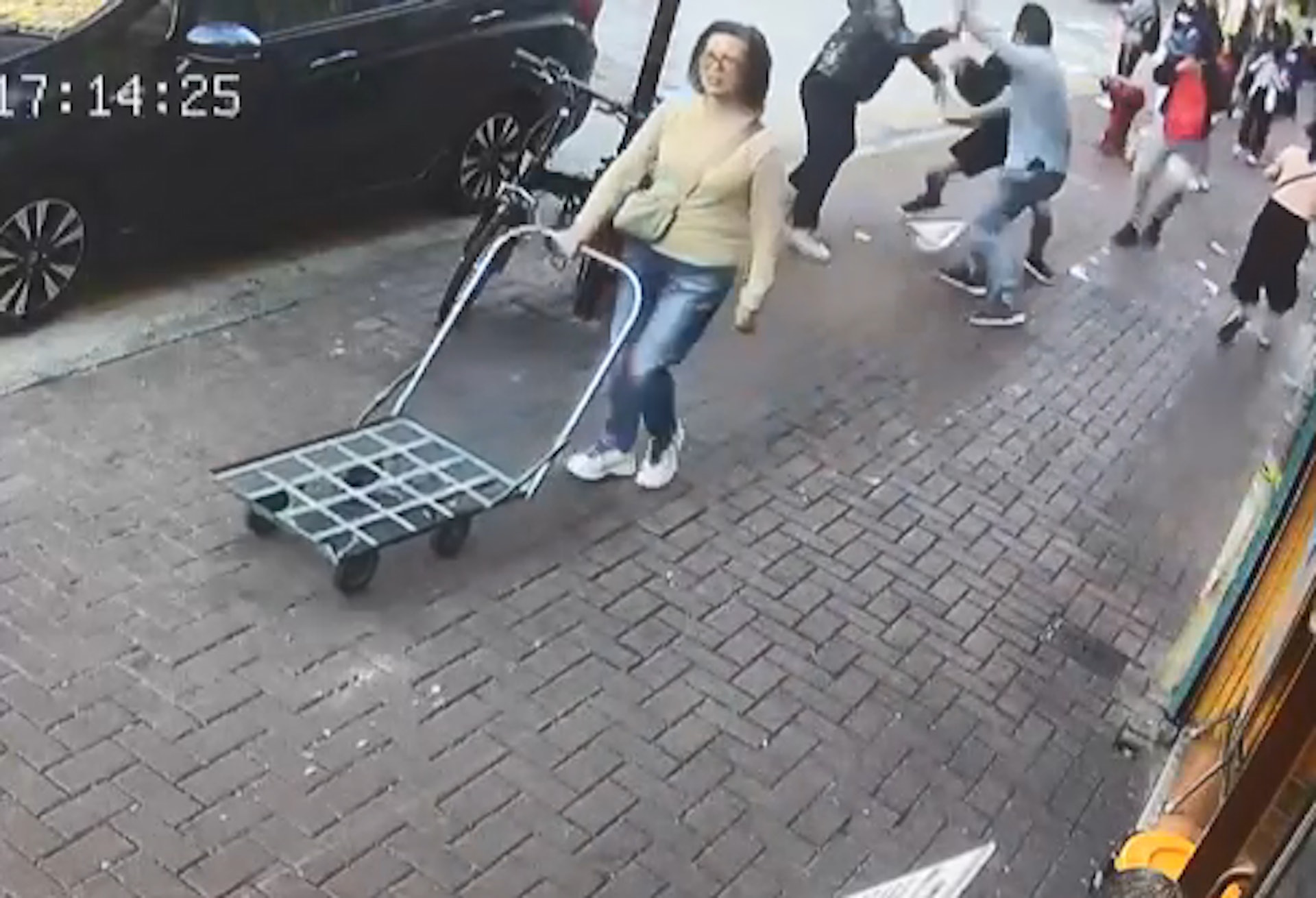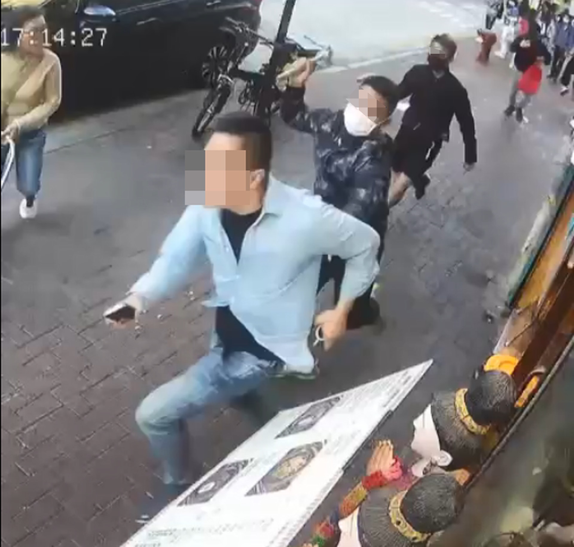 # n: @" W" R+ \( ?6 mTVBNOW 含有熱門話題,最新最快電視,軟體,遊戲,電影,動漫及日常生活及興趣交流等資訊。其中兩名兇徒持鐵錘施擊,事主試圖擺脫糾纏及逃走,兇徒繼續追上,最後的男子持手機拍下施襲過程。(讀者提供影片截圖)