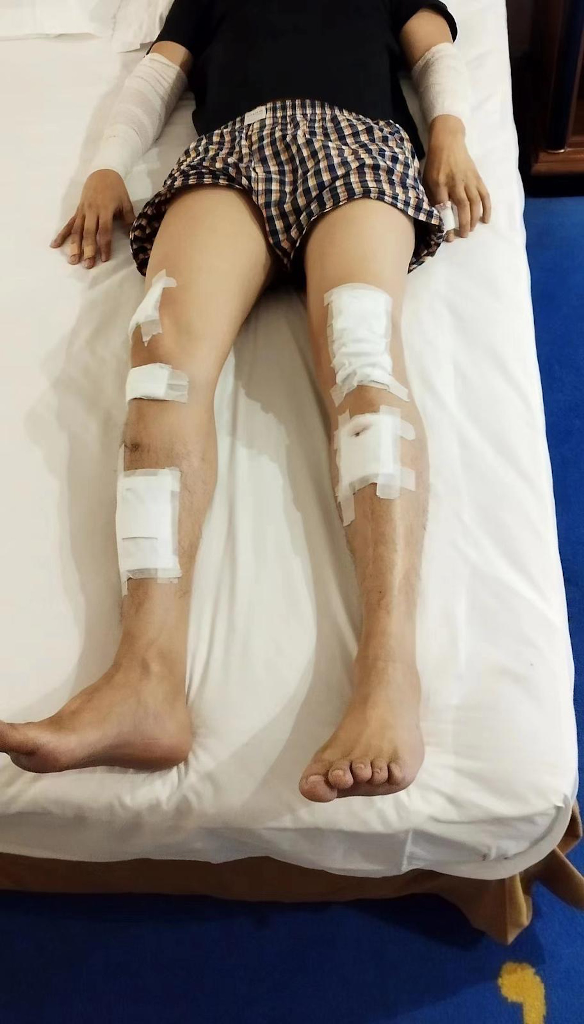 事主遇襲後全身多處受傷,更導致左腳永久傷殘。(讀者提供)