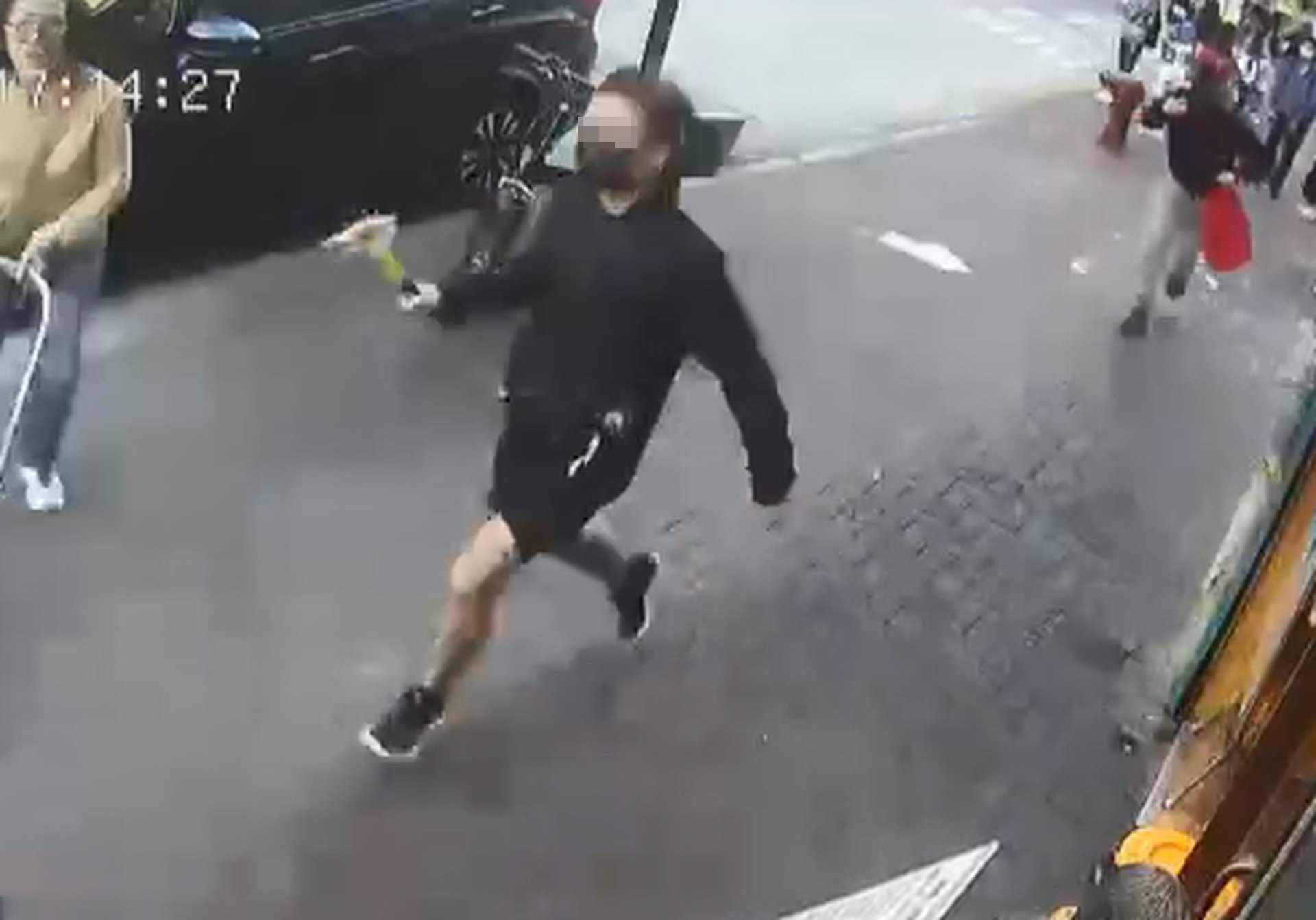 案發現場一帶的閉路電視拍得三名涉案疑兇犯案情況。(讀者提供影片截圖)tvb now,tvbnow,bttvb& V4 J; W. X6 O* Y