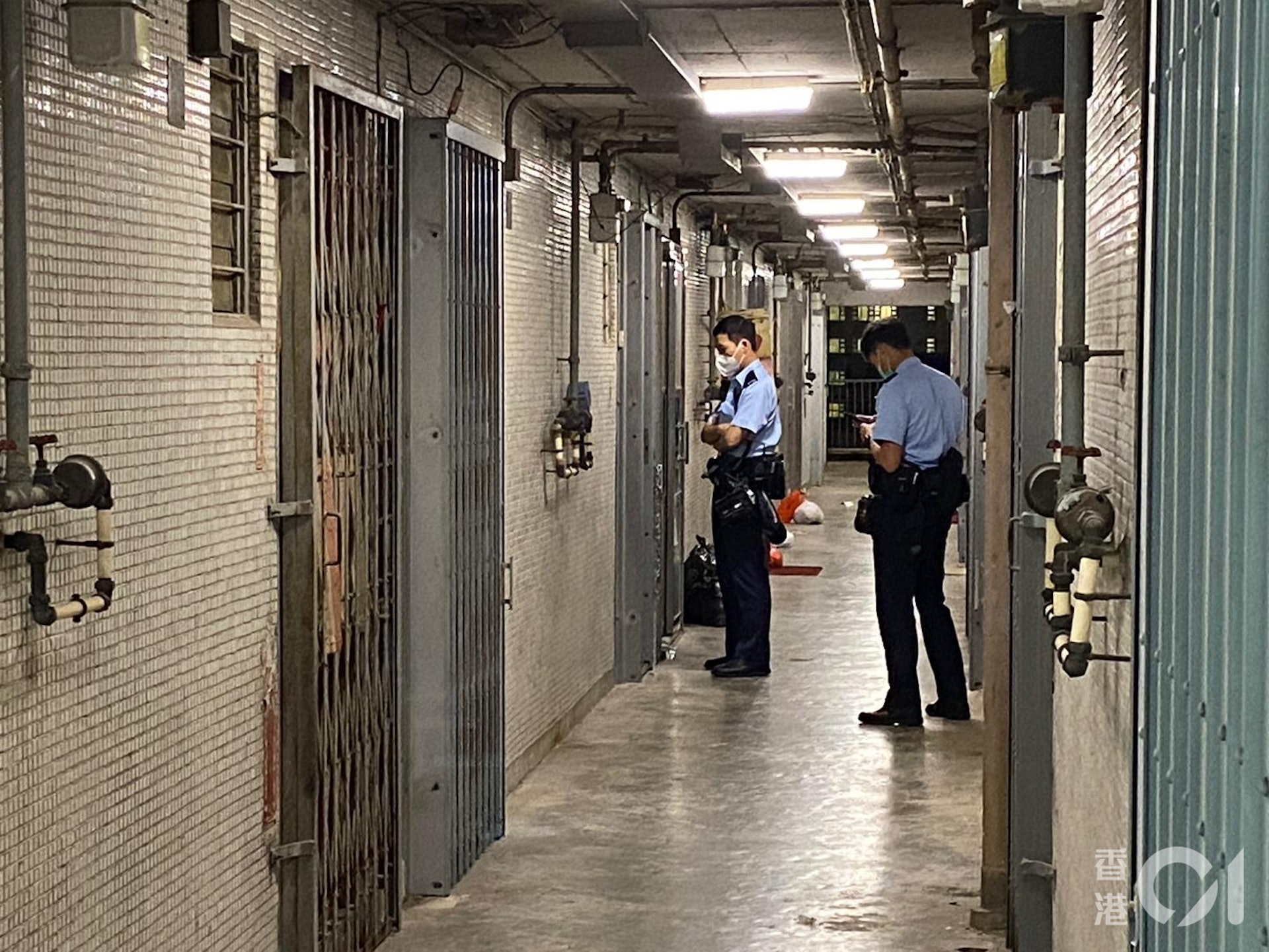 6 x8 R" d* }# V警方封鎖涉事單位及樓層走廊調查,現場傳出濃烈臭味。(陳浩然攝) |