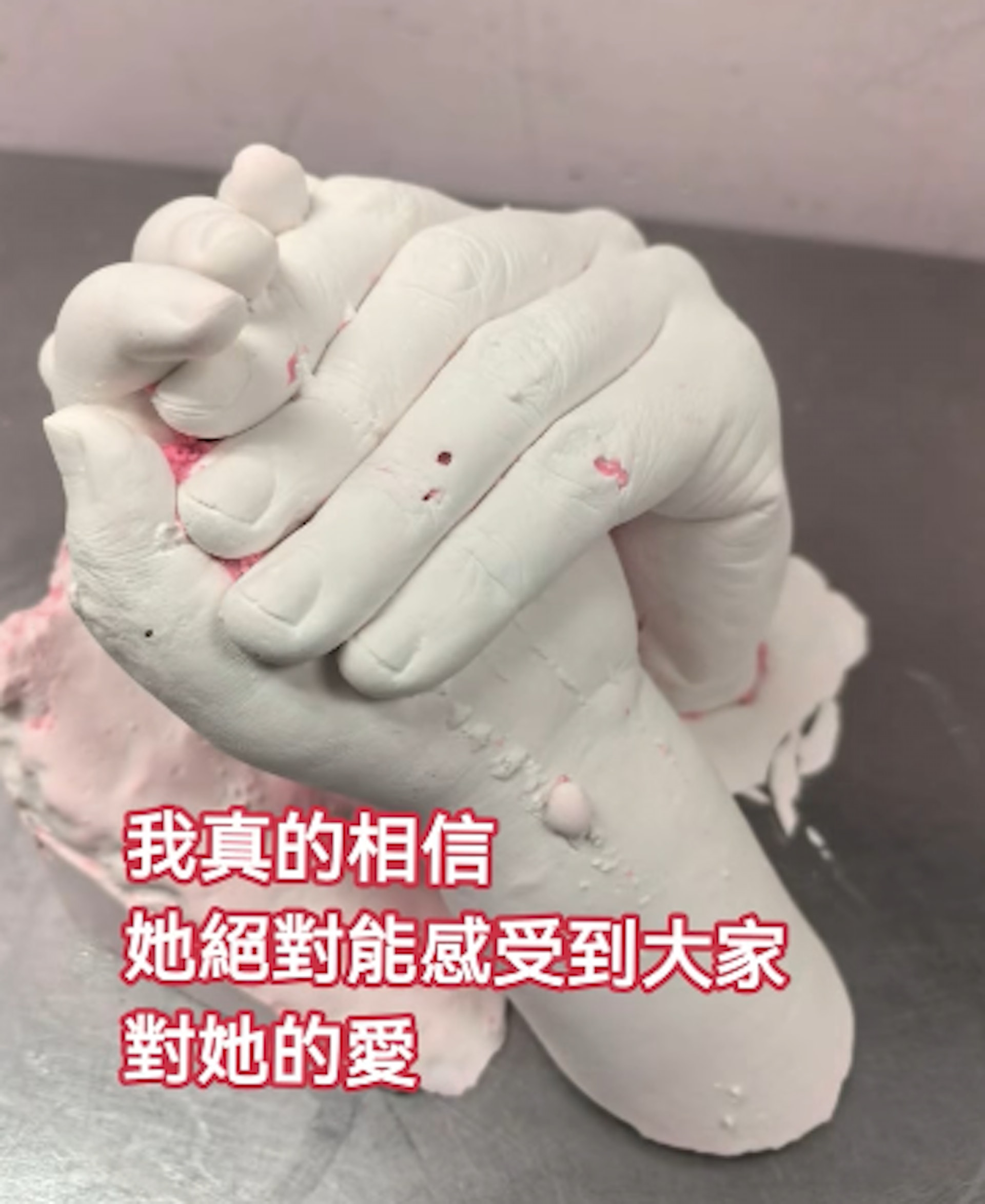 1 h. \5 j2 H5 e# sTVBNOW 含有熱門話題,最新最快電視,軟體,遊戲,電影,動漫及日常生活及興趣交流等資訊。天瑜爸爸在社交平上載短片,紀錄他與天瑜製作手模留念,並感謝各界關愛。(天瑜醫療事故關注組Facebook 圖片)
