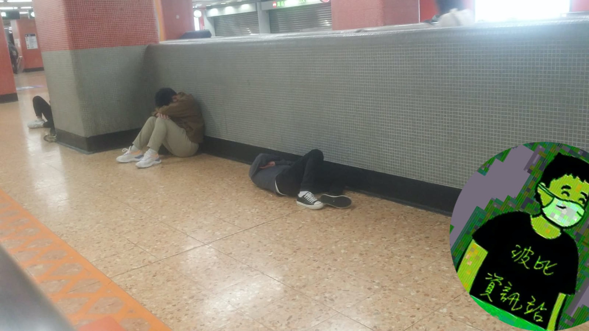 另有網上照片流傳指,凌晨3點鐘,旺角站閘內外都有一批旅客需要席地而睡。(51黃金良心圈facebook圖片)