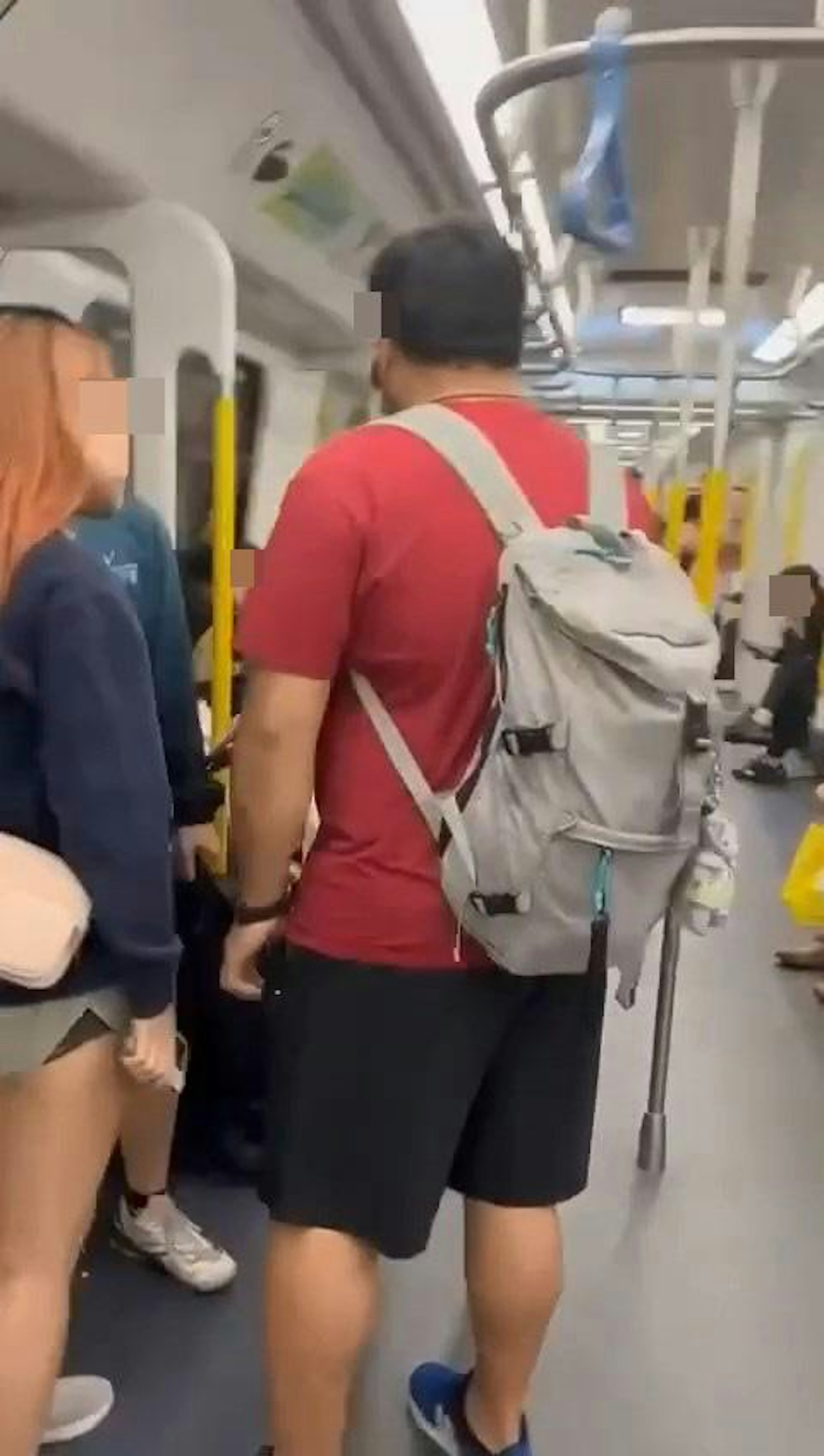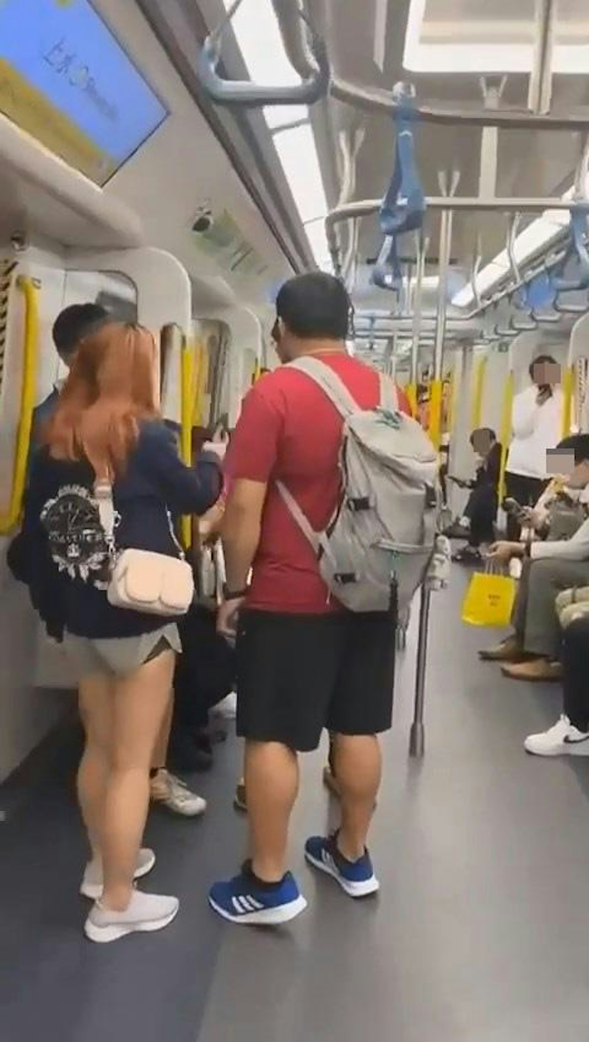 本港網絡瘋傳1段「港女大鬧港鐵」影片,有穿短褲的港女等下車「踎地」,當時有男學生望了一眼,詎料港女看到後即大爆發,怒斥對方性騷擾。(影片截圖)$ d: }) S' G$ G9 r4 q N# r" n2 L